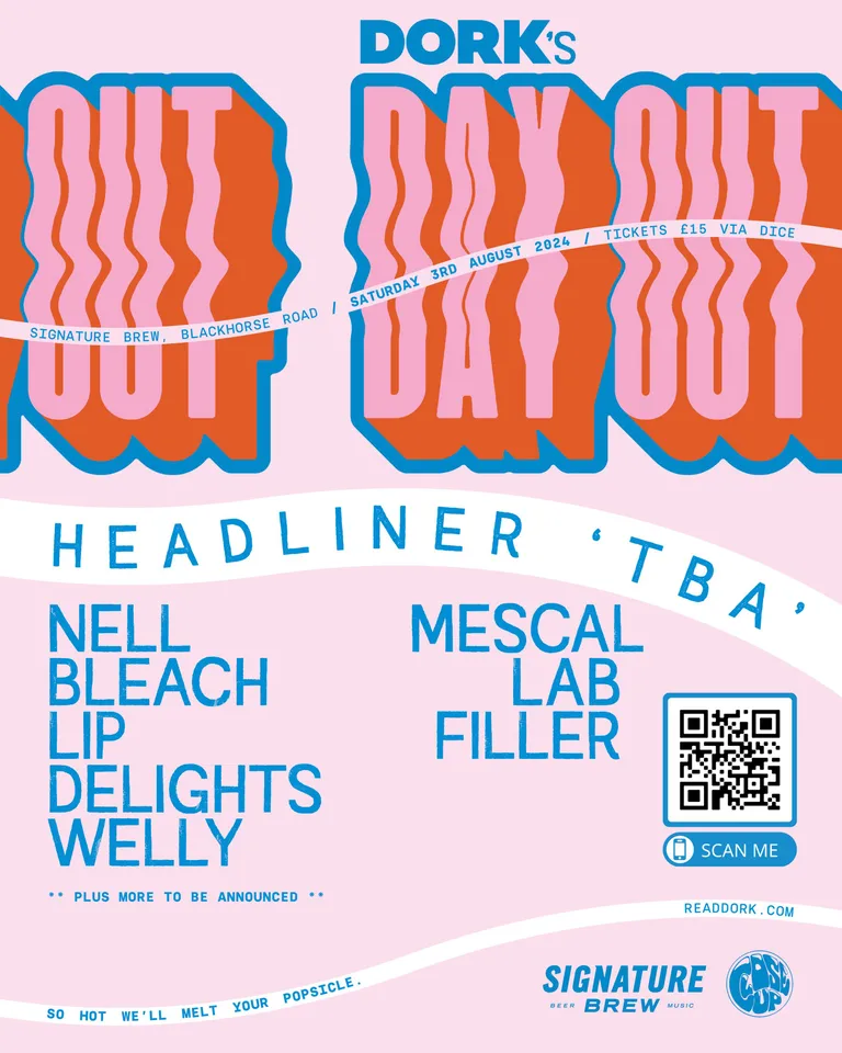 Today, we're letting you in on the first five names for this summer's event. Nell Mescal - fresh from headlining a sold out Dork's Night Out last month - will join us again, alongside longtime Dork faves Bleach Lab, who put out one of our favourite albums of 2023, 'Lost In A Rush Of Emptiness'. They'll be joined by fresh new talents Lip Filler (read our recent digital cover feature here), Delights and the inimitable Welly (read our recent digital cover feature here).