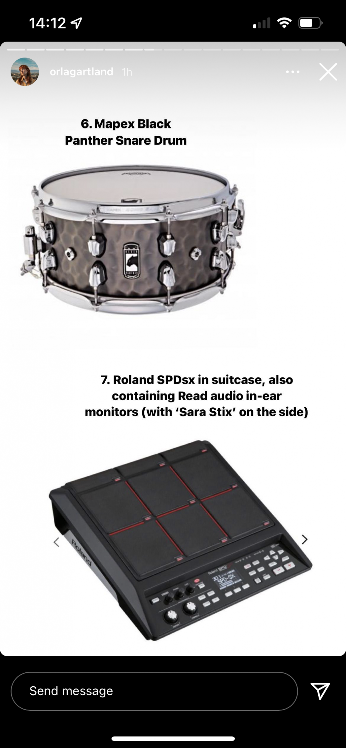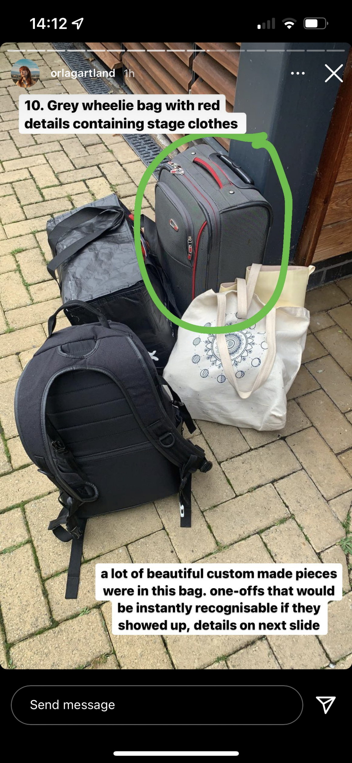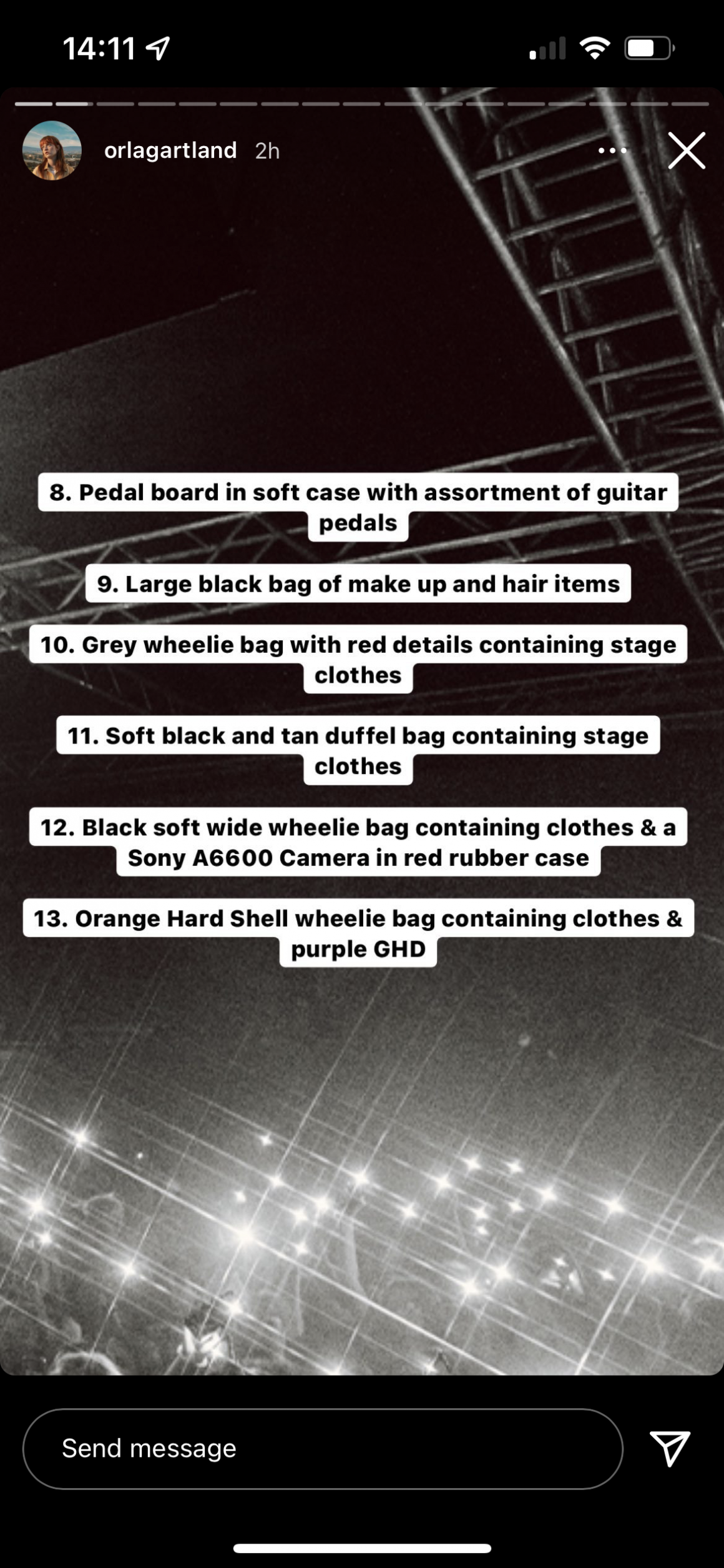 Posting to Instagram stories, Orla listed a full rundown of what was taken, including instruments, stage outfits and more.