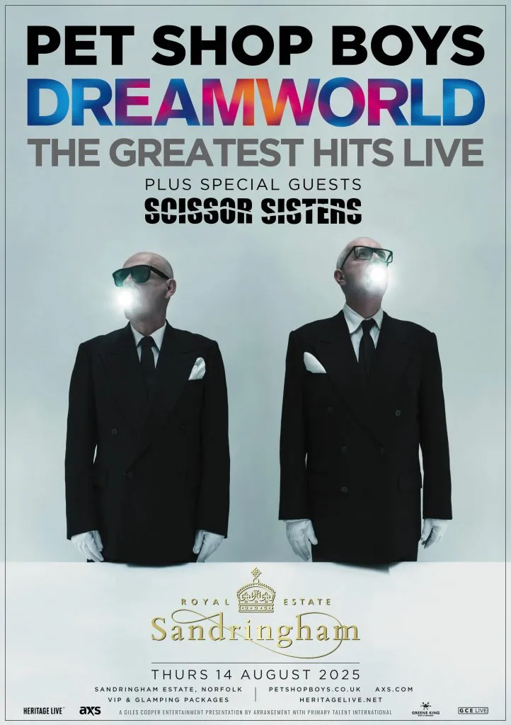 Pet Shop Boys are set to bring their 'Dreamworld: The Greatest Hits Live' show to The Royal Sandringham Estate in Norfolk, with special guests Scissor Sisters joining them for the performance on 14th August.