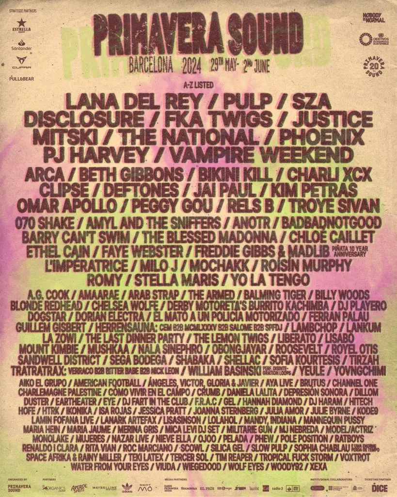 The event has signed up Lana Del Rey, Pulp, SZA, Disclosure, FKA Twigs, Justice, Mitski, The National, Phoenix, PJ Harvey, Vampire Weekend, Arca, Beth Gibbons, Bikini Kill, Charli XCX, Clipse, Deftones, Jai Paul, Kim Petras, Omar Apollo, Peggy Gou, Rels B, Troye Sivan and loads more.