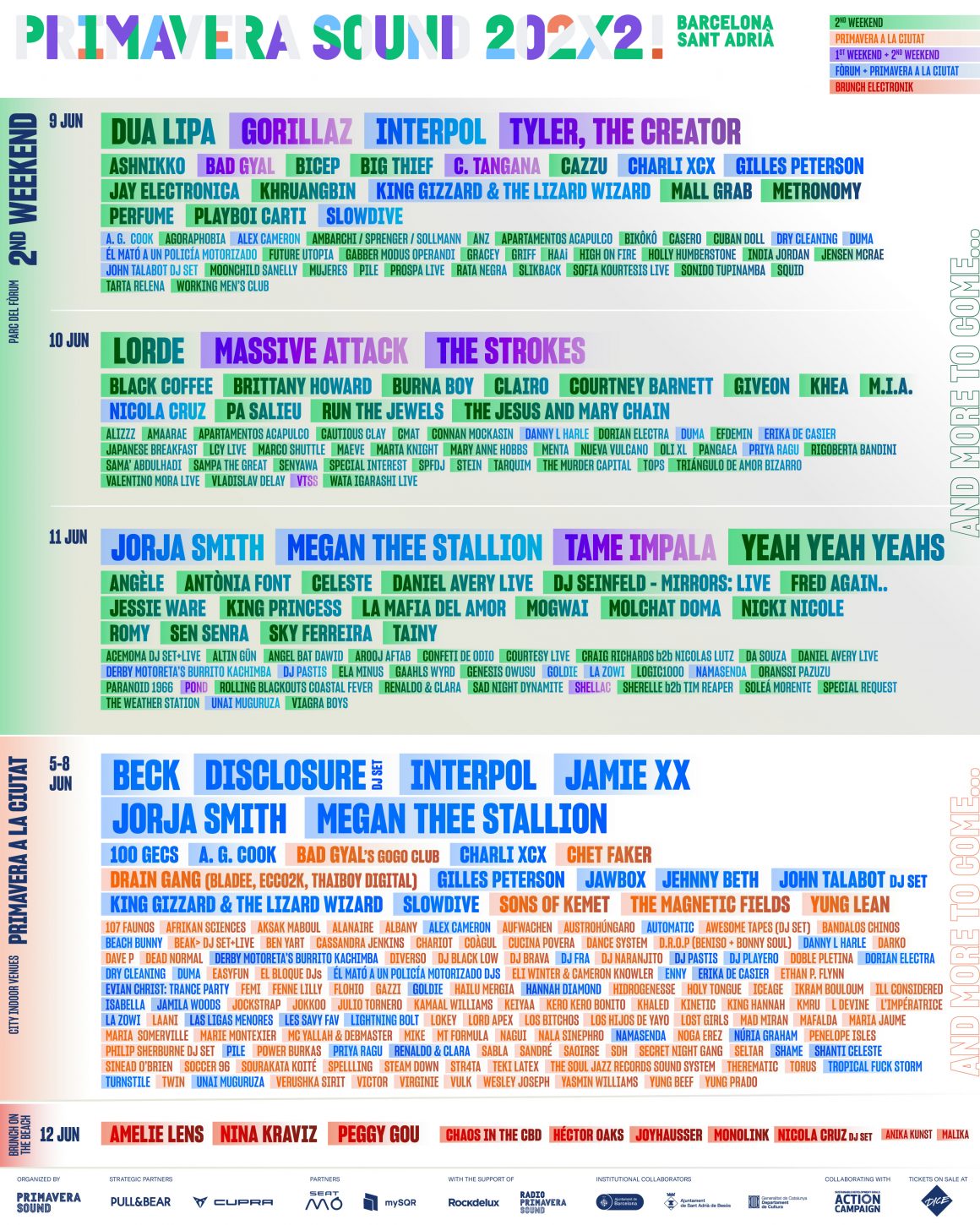 Performing at the first leg will be The Strokes, Tame Impala, Tyler, The Creator, Nick Cave and the Bad Seeds, Gorillaz, Pavement, Massive Attack, Jorja Smith, The National and Beck. The second, Dua Lipa, Lorde, Megan Thee Stallion, Interpol, Yeah Yeah Yeahs, as well as The Strokes, Tame Impala and Tyler, The Creator.