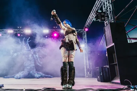 “If you peel off my skin, you’ll find a colony of ants living just here,” says Ashnikko. As stage banter goes, it’s different but they’ve built a career on being fantastically honest. Over the past few years, they’ve also become something of a regular at Reading Festival. Today, as she marches onto the Festival Republic Stage for a last-minute, pop-up set, she’s given a hero's welcome - metaphorical ants and all.