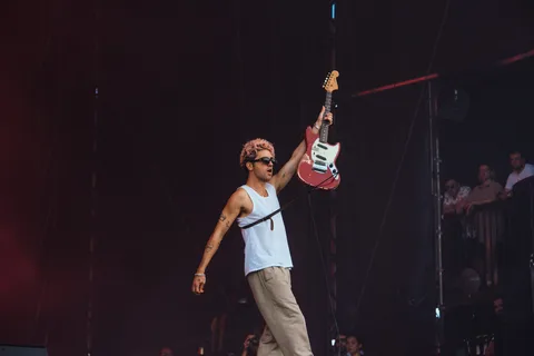 An ominous, ethereal haze clouds the dance tent as Gus Dapperton prepares to walk onstage on the second day of Reading 2022, and his music only bolsters this absorbing, dreamlike state of mind. Curating a charmingly alternative space, he embraces the opportunity to dance in his own unique way, letting his physicality do most of the talking. Taking the time to introduce his five-piece live outfit, Gus' band effortless ooze suave vibes; relaxed positivity channelled through every note as the gang are led through an escapist show by silky lead vocals. 'My Favourite Fish' tones things down and proves Dapperton's groove unavoidable, while 'Ditch' blasts synths across the muggy tent before rich guitar solos drive the set towards his hits like 'First Aid'. (FH)