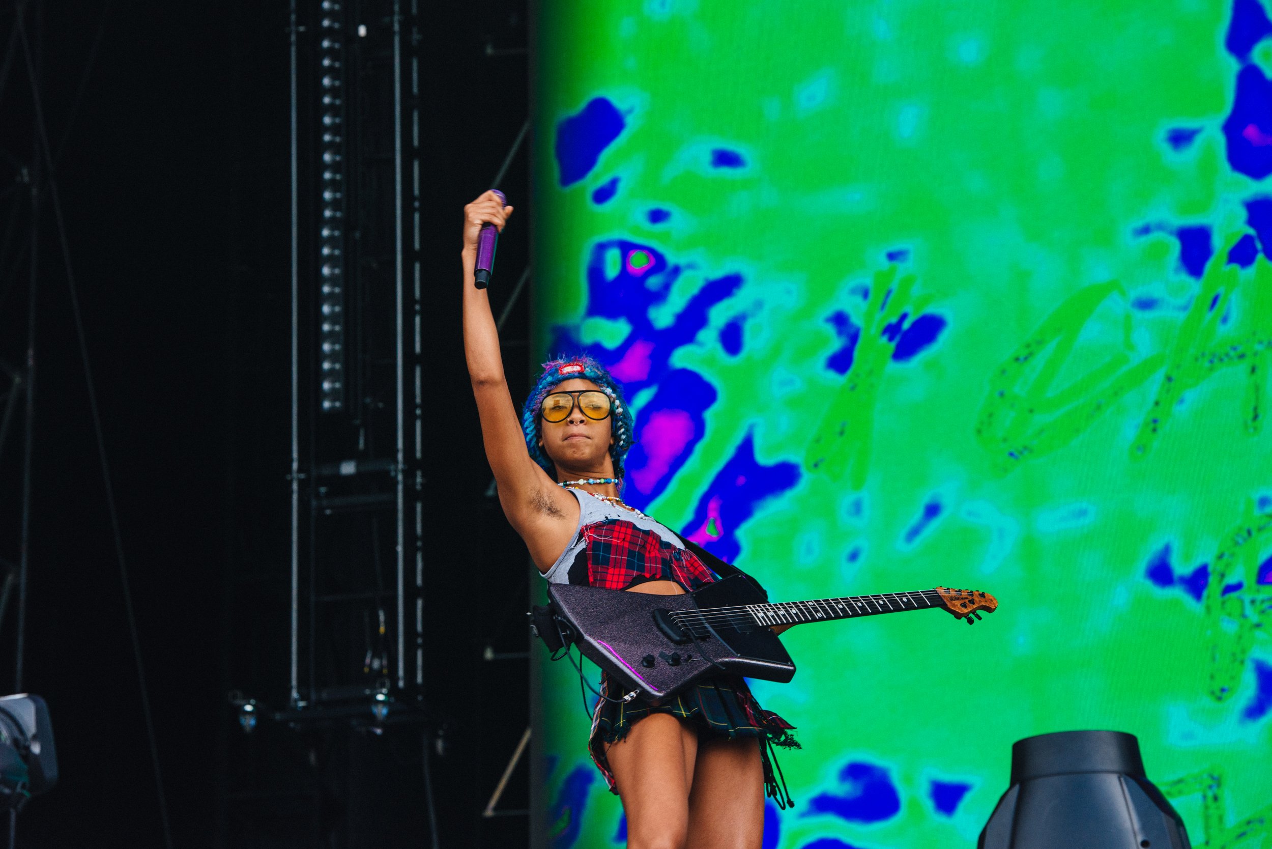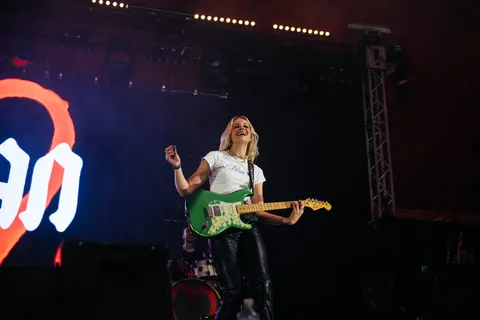 After wrapping up a tour, she notes that it’s nice to be playing outside instead of in closed venues, and says this is how music should be. With a refreshing rock star attitude, she calls for positive affirmations from the crowd rather than mosh pits between tracks from last year’s emotionally honest ‘How I’m Feeling Now’.