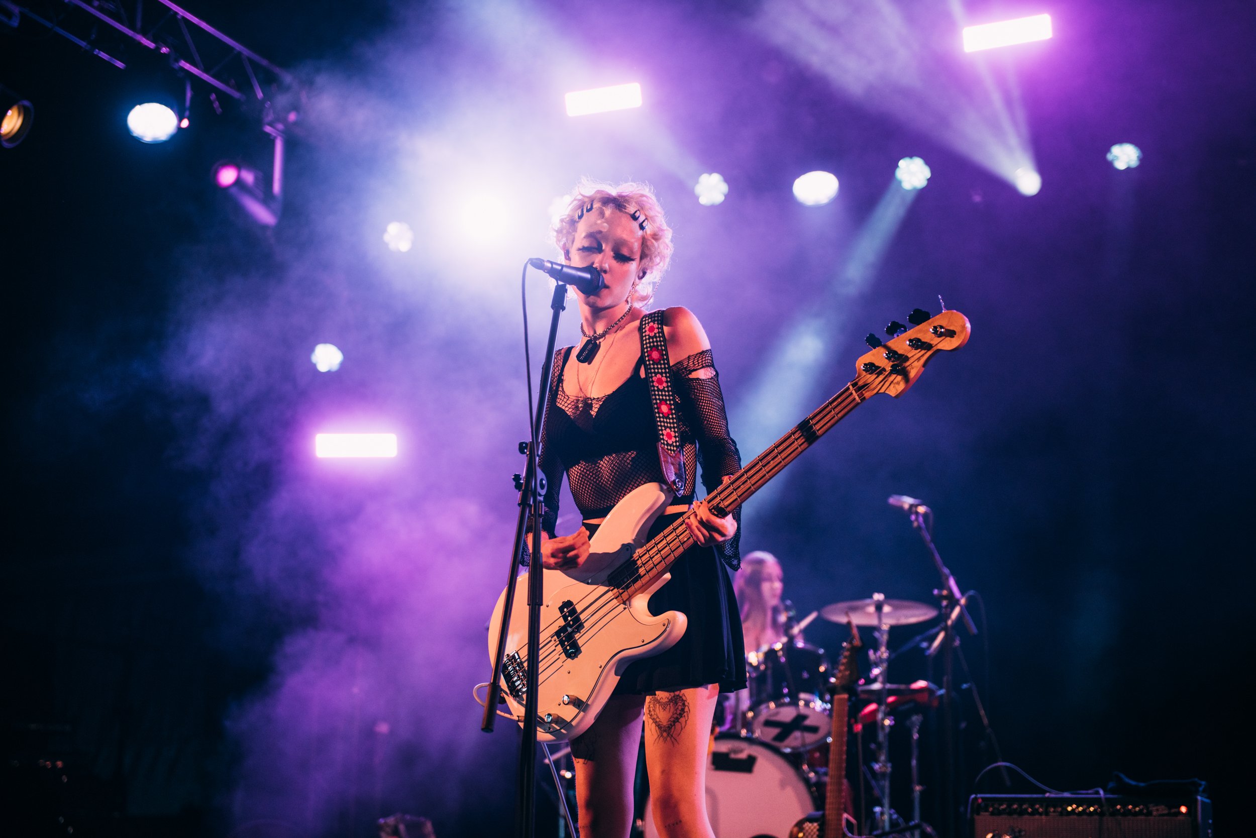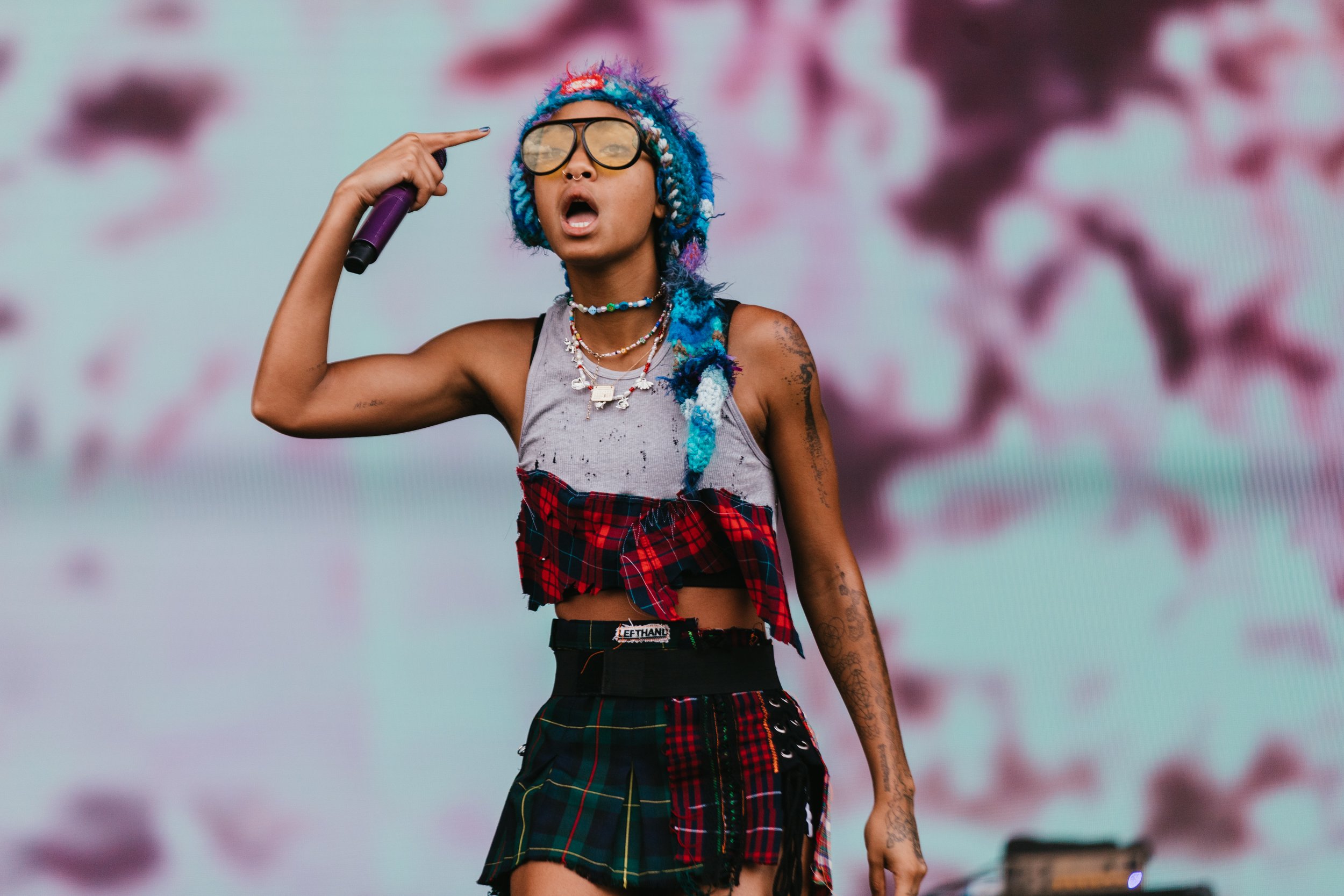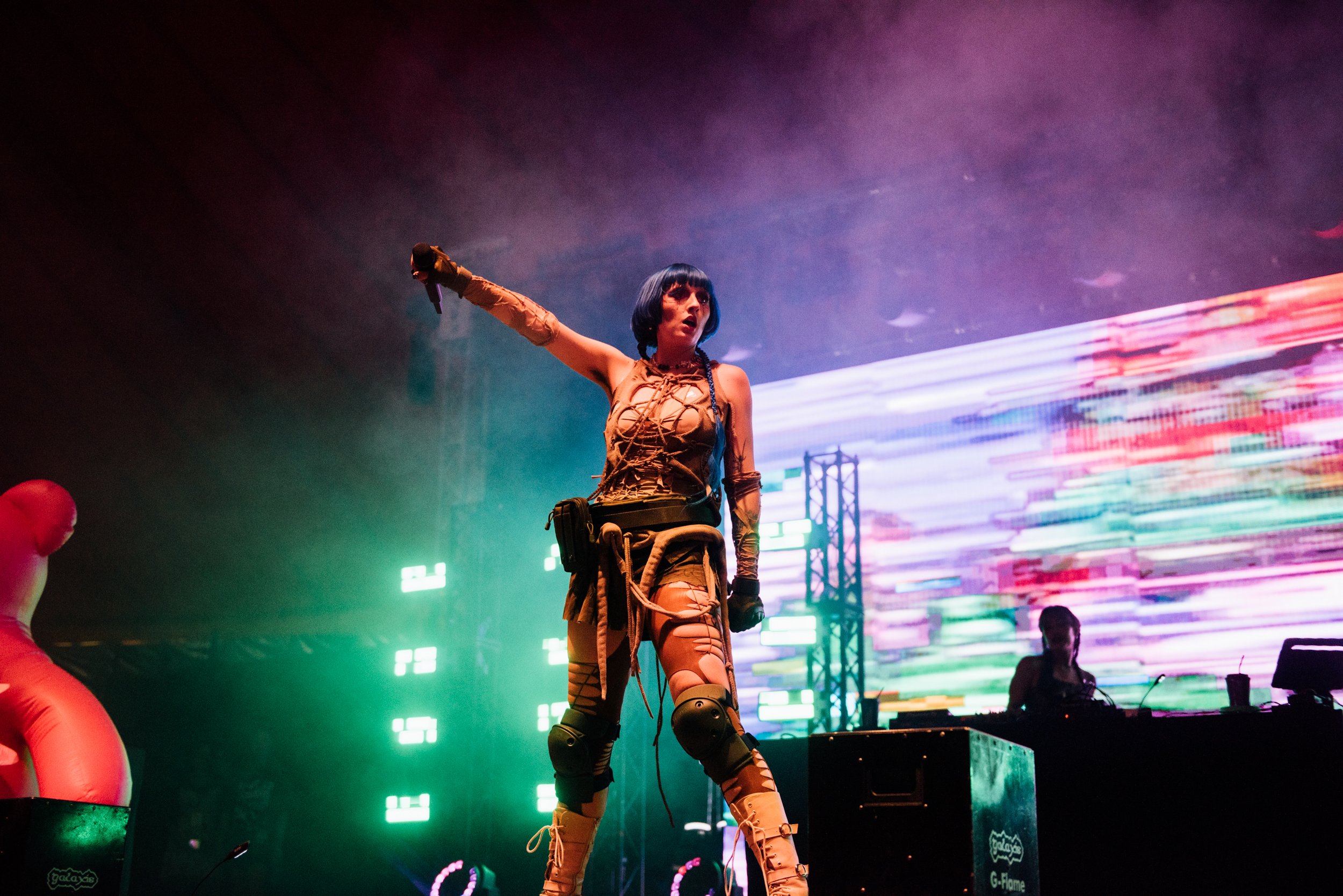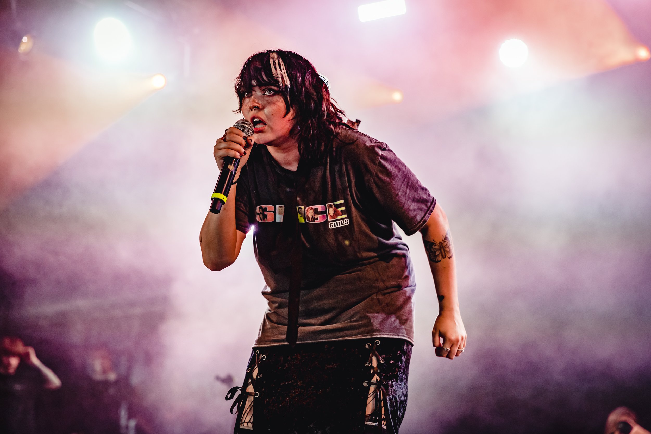 Following up 100 gecs is hard to beat on the bonkers scale, but Ashnikko gives it a good go. Dressed in little other than ropes wrapped around her body and humping the stage in front of two hot pink teddies with huge vulvas printed on them, her stage show is just as provocative as her lyrics.