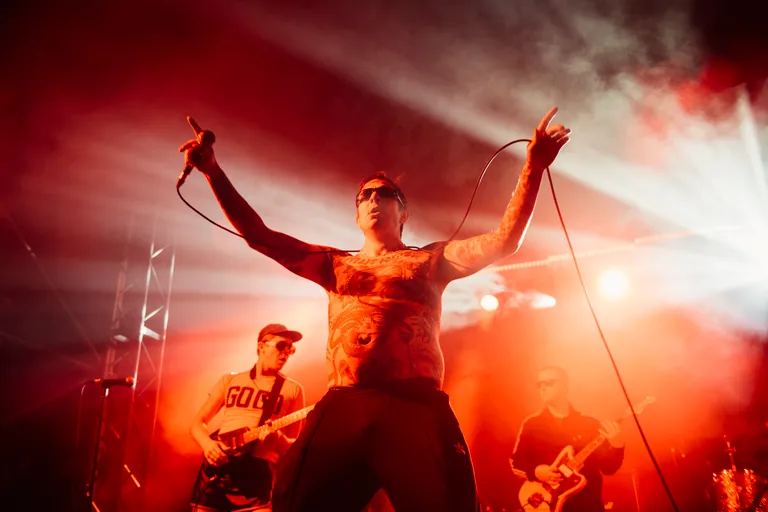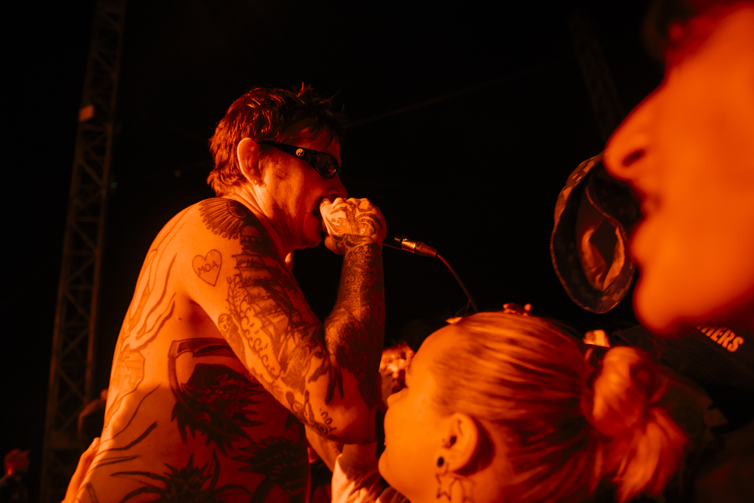 "Last time I was here, I was just a child - skinny and good-looking," he soon remarks. "Looks like nothing's changed!" Charismatically lurching into 'Troglodyte', the chaos begins and never stops. An uncountable number of crowdsurfers fly over the barrier, and swirling moshpits part for a rowing session en masse. Murphy leaves the stage without anyone even noticing; security are put through the ringer.