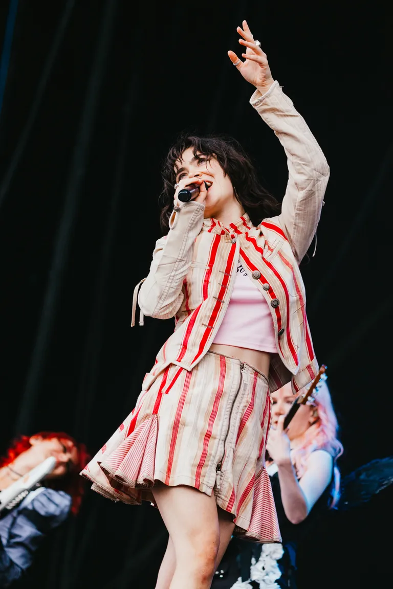 "It's always been a dream to play this festival, but I didn't think we'd start on the Main Stage with all these people watching," she explains, having first come as a punter after getting her GCSE results. "I can't believe we're here," she adds before reminding the crowd that "anything is possible".