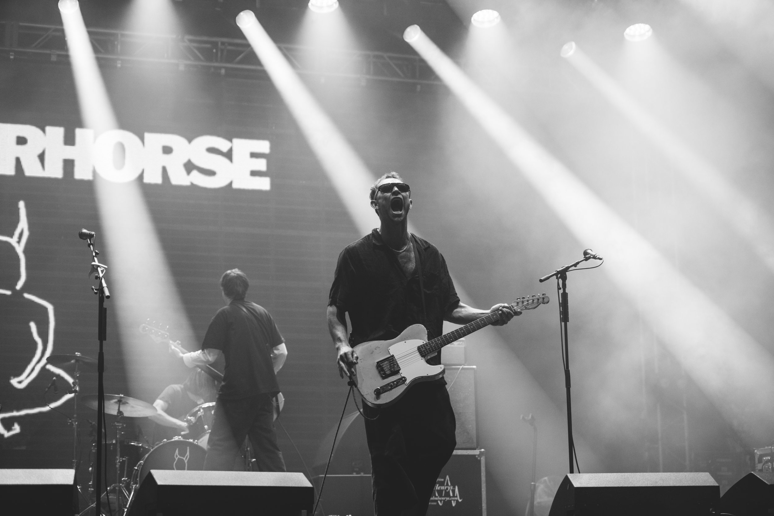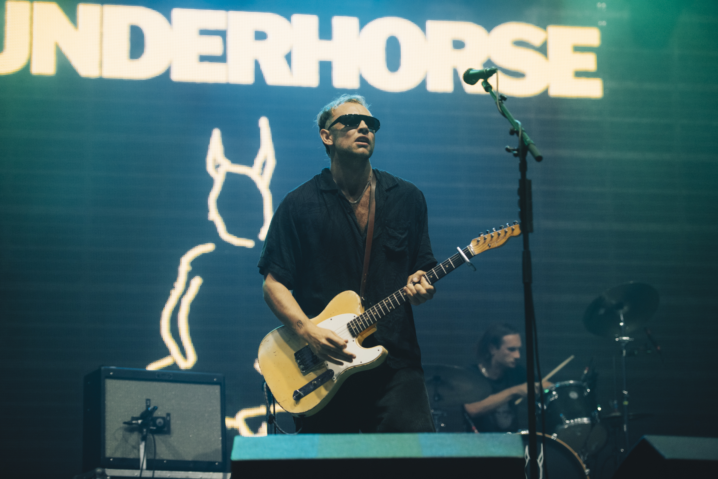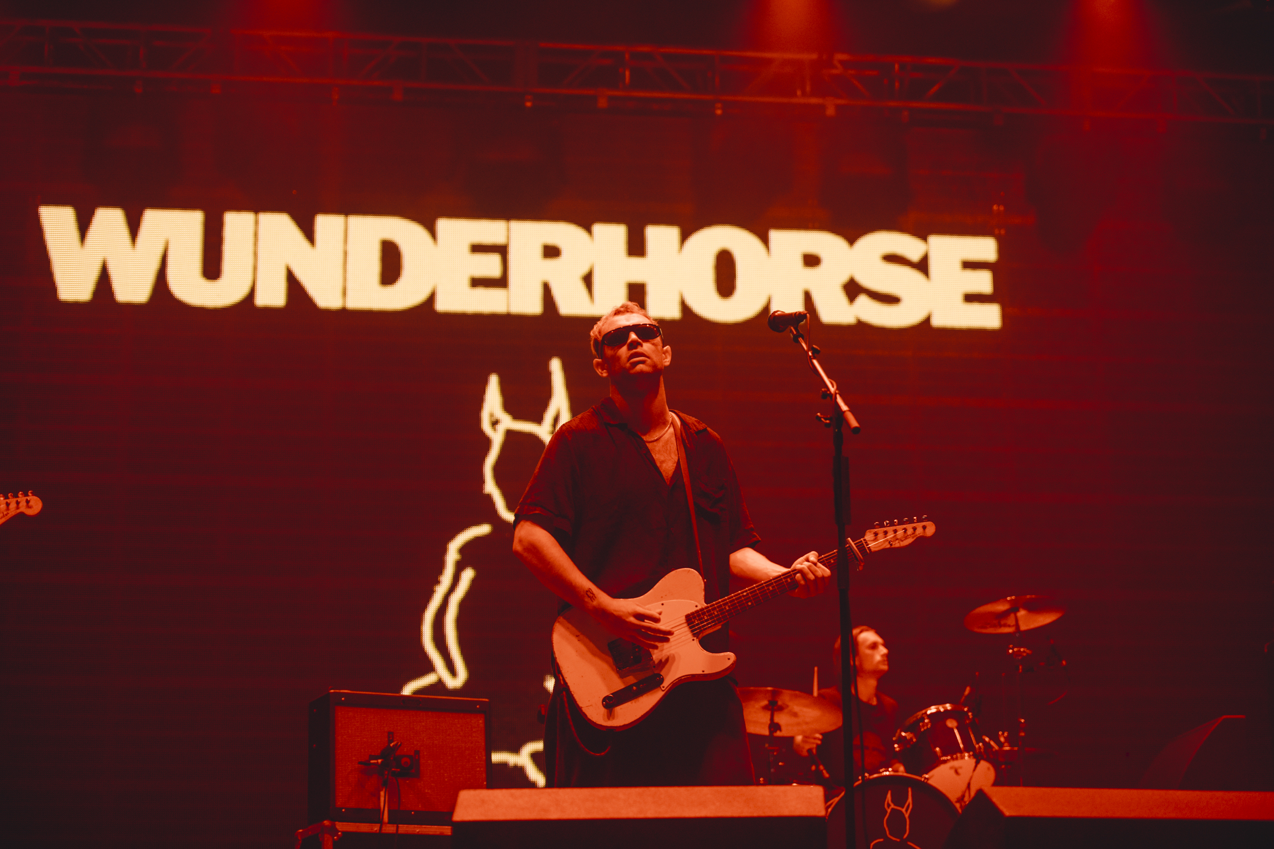 As the Fontaines D.C. crowd rush across the festival site for their next adventure, Wunderhorse's world of 'Midas' lies in waiting. With this second LP due in just six days, it's clear the band have moved on from the youthful ruminations of their debut, 'Cub', to this grittier, more adult set of tracks. It transforms their live show entirely, with the focus shifting from melodic musings to guttural roars.