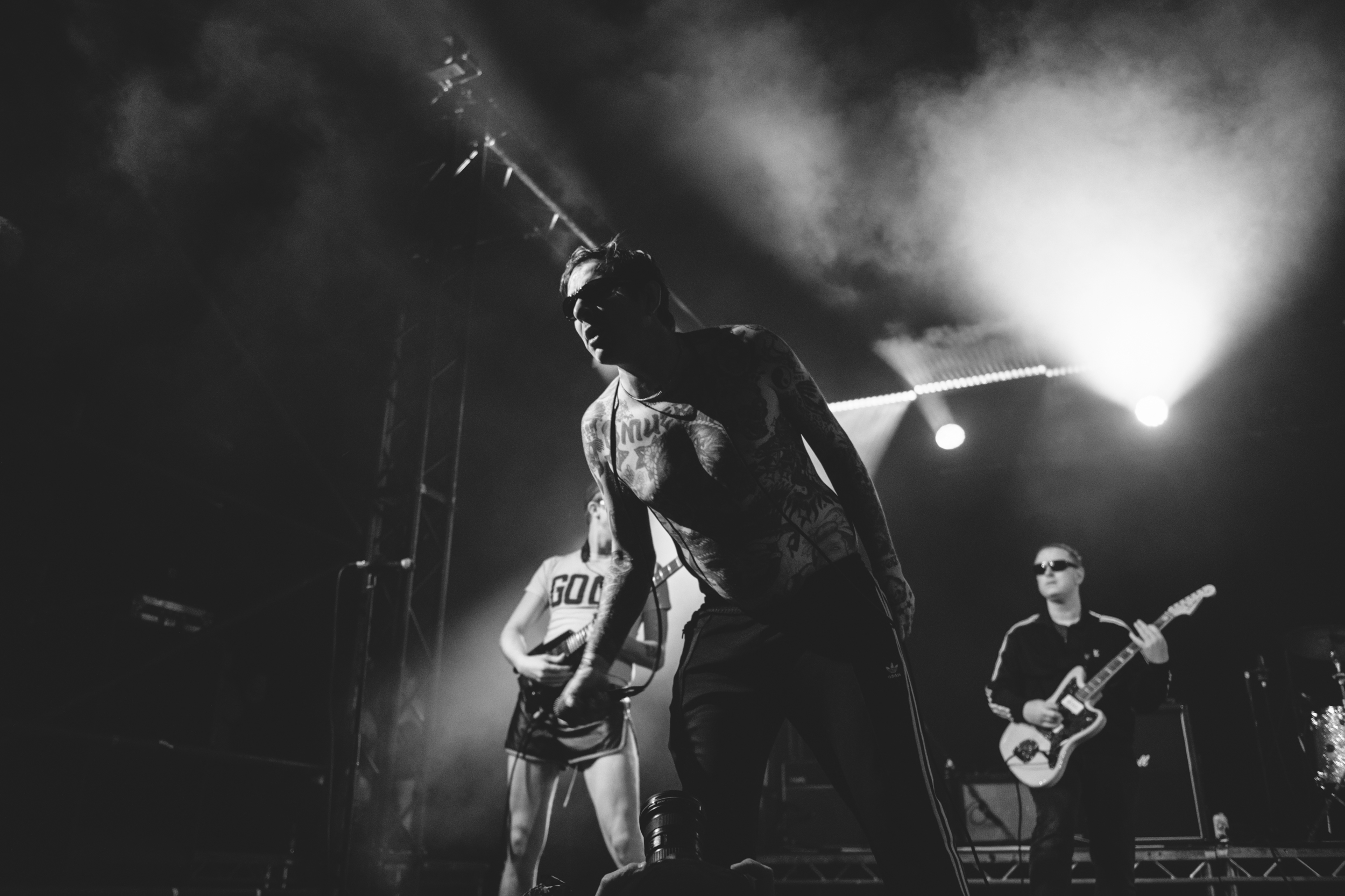 Bizarre, existential, twisted - and that's just us on a Saturday night. Viagra Boys are another dimension entirely as they saunter onto the Festival Republic stage, frontman Sebastian Murphy temporarily wearing a coat but permanently wielding a cigarette as he opens up this dark world of his with 'Ain't No Thief'.