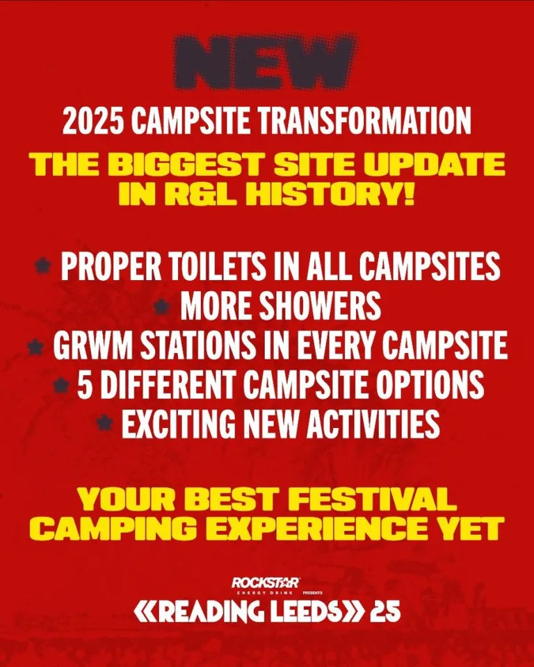 Reading & Leeds Festival have announced their biggest camping overhaul in the event's 55-year history, introducing five new distinct campsites and comprehensive facility improvements across both sites.