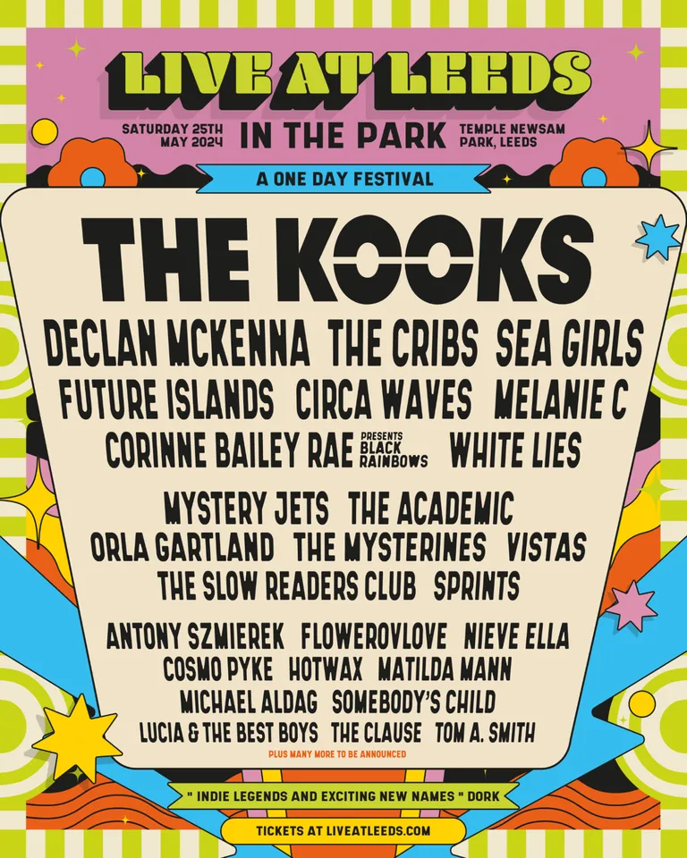 Looking ahead to Live At Leeds: In The Park 2024, Festival Promoter Joe Hubbard says: ”We're already counting down the weeks until we bring the third edition of Live At Leeds: In The Park to Temple Newsam! This truly is our biggest line-up to date and we're over the moon to reveal indie titans Sea Girls, hometown hero Corinne Bailey Rae and "T-Shirt Weather" charmers Circa Waves to our already-stacked summer billing. Live At Leeds has always been the place to find your new favourite acts, and with rising stars like HotWax, Lucia & The Best Boys, Tom A. Smith and The Clause joining the line-up, we're hoping our audience are blown away by this year's talent. You've got 17 weeks to round-up your friends, sort out your festival fits and pack the essentials so you're ready for another incredible summer day-out in May."