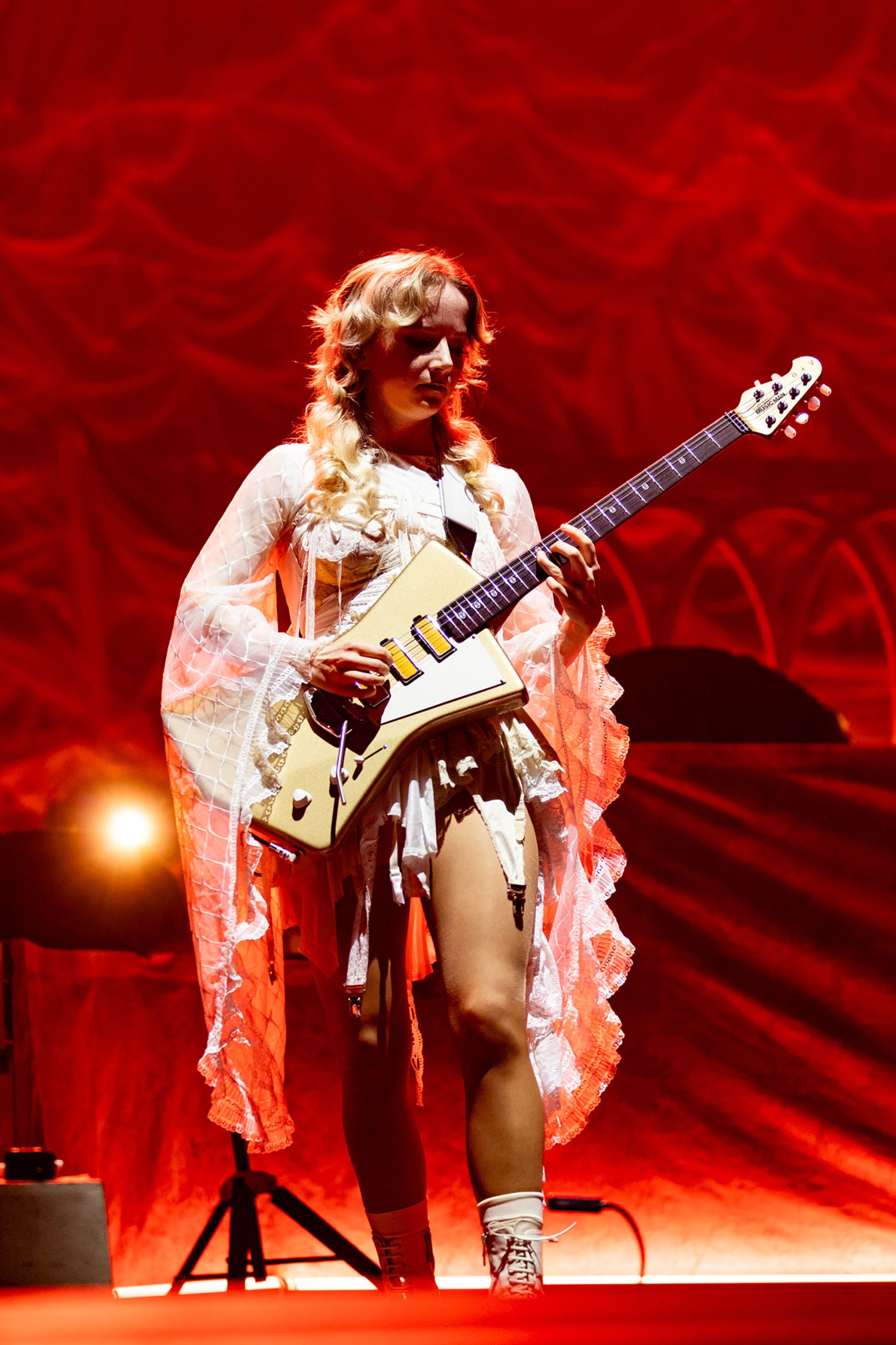 On early tours, the band put on a united front as they took on the world, but tonight, there's a fearless sense of play to the whole thing. Aurora delivers lead vocals on the searing 'I Hold Your Anger', Georgia shares a menacing burst of poetry before the still-unreleased, still-vicious 'Big Dog' ("Watch out for those dogs. Those evildoers. Those mutilators of the flesh. They know not the difference between hunger and loathing but it's what we know best") while Emily's solo in 'Burn Alive' has the rest of the band on their knees in worship.