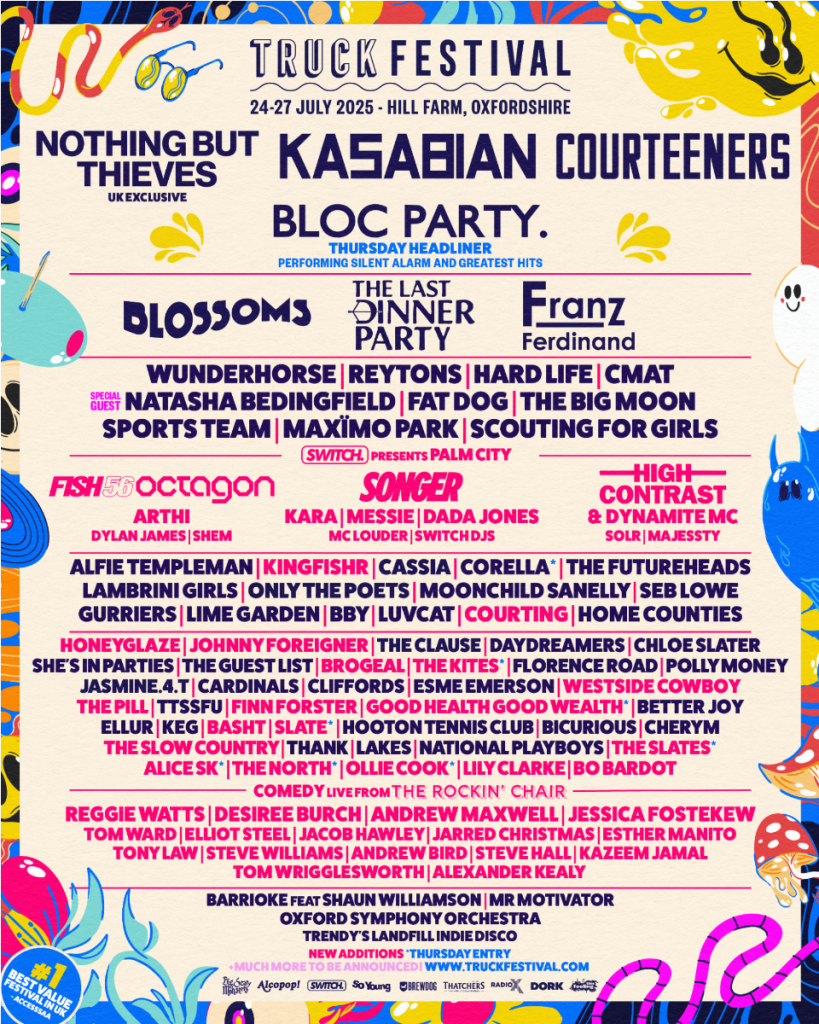 Festival Manager Lily Brimble and Head Of Marketing Sam Harris say: "Wow. Just wow. That's our reaction to the response we've seen so far when it comes to Truck 2025, with tickets flying out at record speed that has us incredibly excited for the summer to come. We're delighted to unveil these new additions to the lineup, showcasing our commitment to making the sort of festival weekend where no matter the time, there's something can't-miss just waiting to be discovered - whether it's our biggest comedy lineup to date headlined by the incomparable Reggie Watts or soundtracking late into the night with our famed Palm City x Switch takeover that sees Songer, High Contrast and Fish56Octagon lead the way in 2025."