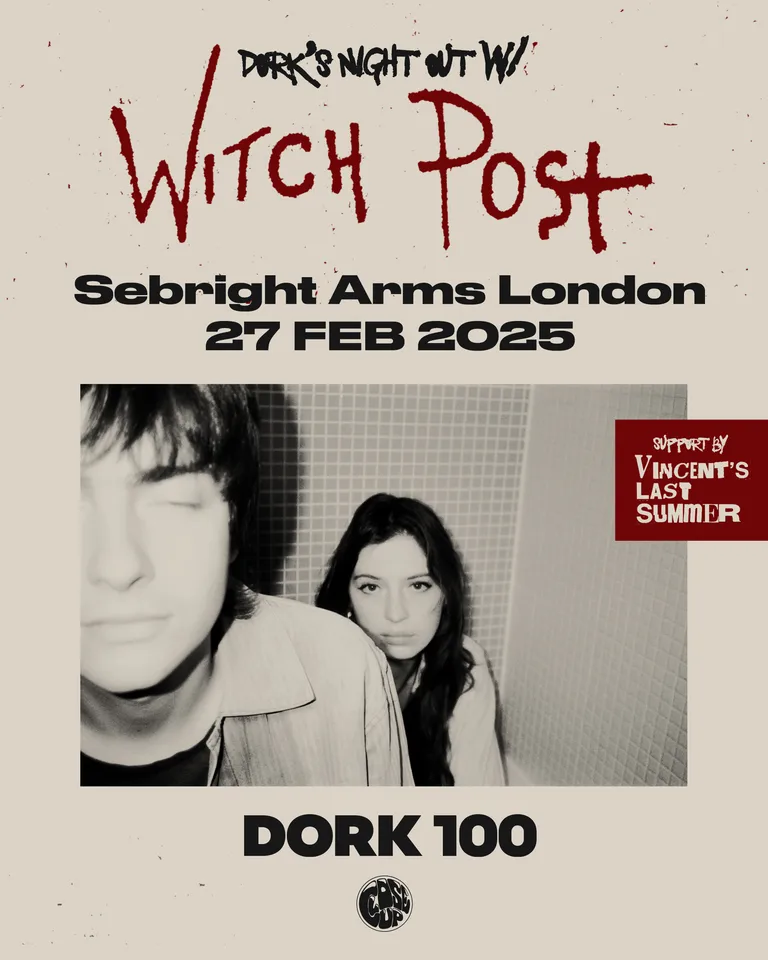 Dork’s Night Out is turning the dial up on an already blazing February in London. Following the epic conclusion of the Hype List Tour 2025, the incendiary Vincent’s Last Summer have been officially tapped as the support act for Witch Post’s spellbinding show at the mighty Sebright Arms on 27th February.