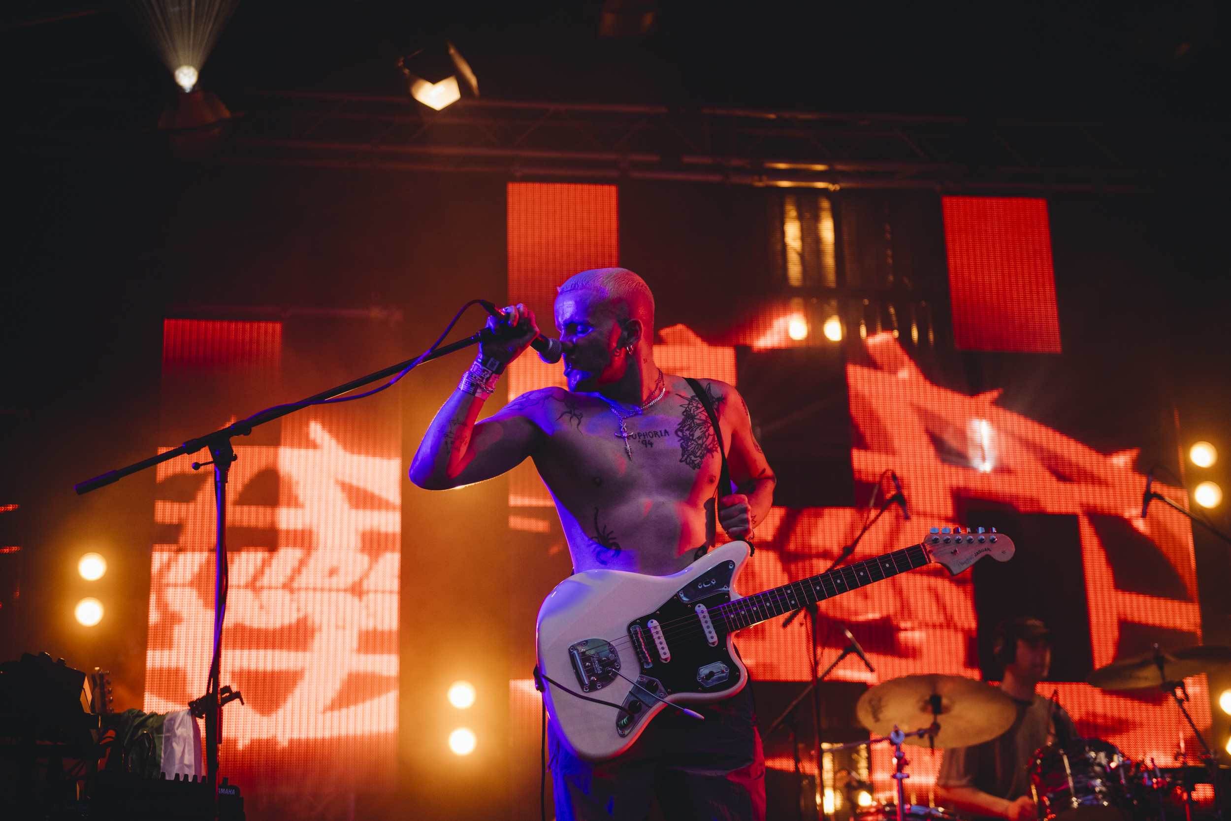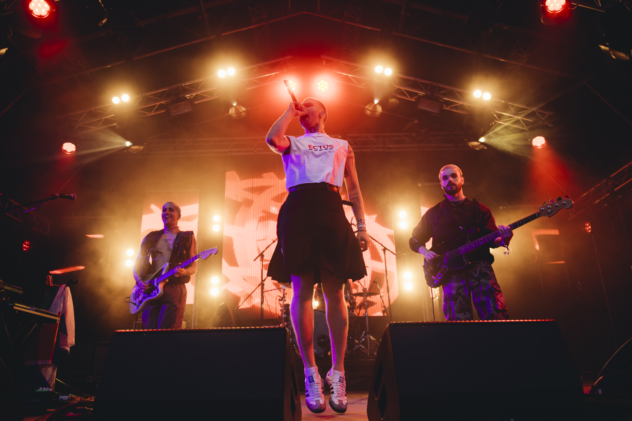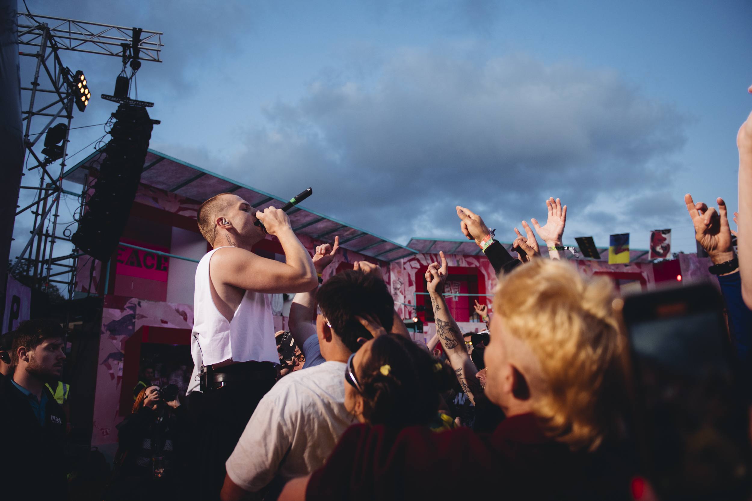 Lambrini Girls were built for a place like Glastonbury. On their second set of the day (and one of four overall), their vital voices will be sorely missed by the BBC’s Woodies coverage on Friday morning, but leader Phoebe’s passionate speeches about calling out your mates for dodgy behaviour, boycotting Maccies and slagging off JK Rowling need to be heard. It’s anger rooted in total love though, as she gets the crowd to chant “Free Palestine” and dots about the audience with a mic calling any queer-identifying person a legend