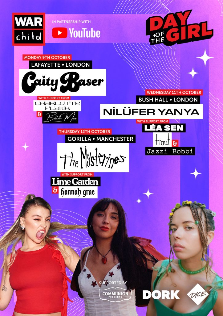 Caity Baser, Nilüfer Yanya and The Mysterines are all set to perform intimate live shows in venues across London and Manchester throughout the week commencing 9th October, in support of the Day of the Girl event series from War Child UK - the specialist charity to protect, educate, and stand up for the rights of children living in war zones.