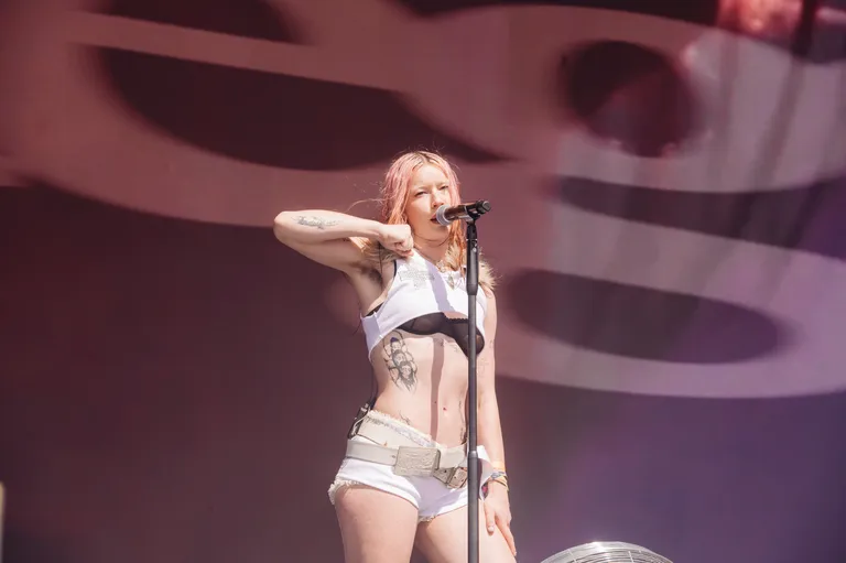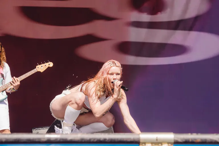 Wet Leg are incapable of putting a foot wrong. A flawless debut album and a run of pre-release singles for the follow-up which are just as good, they stride out to a well-deserved mob of fans. Singer Rhian Teasdale has spent the last few years becoming a very good frontwoman, going from theatrically disaffected eyerolls to bicep-flexing on ‘catch these fists’, and selling new single ‘davina mccall’ with so much energy that the crowd respond to it like an old favourite.