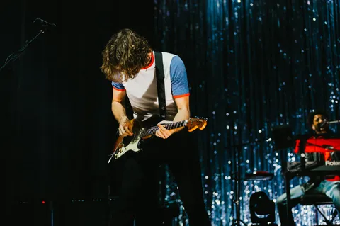 “This song is about being all things at once,” she explains before ‘The Sofa’. By the end of the soaring track, Theo is on the verge of tears as he tries to explain how much tonight means to him. “That can wait until after,” he promises, throwing himself into early breakout hits ‘Bros’ and ‘You’re A Germ’, which ends with a nostalgic throwback image of a baby Wolf Alice (Cub Alice?) on the big screens. It’s a cute, sentimental moment, but rather than a pat on the back, tonight is mostly about how much further Wolf Alice can push things forward.