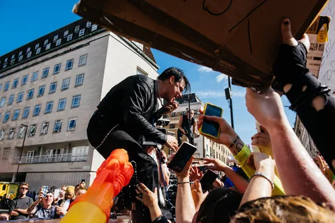 Yungblud brought the chaos to London's Southbank this afternoon (Monday 20th June), as he invited fans down to shoot a video to new track 'I Don't Feel Like Feeling Sad'.