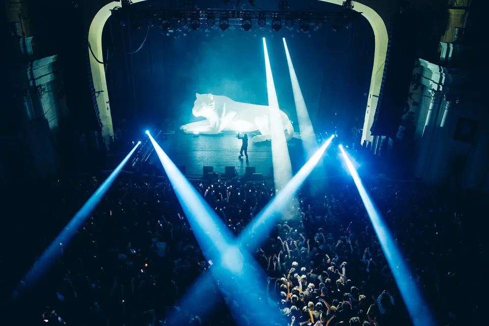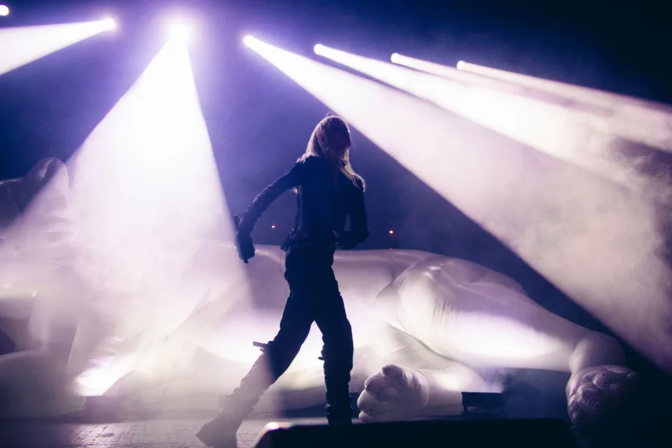 Inside, excitement reaches fever pitch when the one set adornment - a giant inflatable white tiger - is revealed. Obviously, it's nothing compared to when 2hollis arrives. Bounding on stage to 'flash', looking like a very high fashion wizard in his Alexander McQueen cape, the track's chorus refrain of "Holli wanna be a star" feels less like a mission statement and more like a prophecy fulfilled in the months since its release.