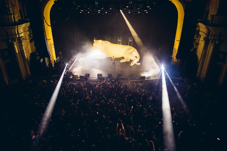 The show comes to a halt (for the first time) after things get too rowdy during the unreleased 'DOGS', and he leaves the stage while, erm, rain sounds play, presumably to calm things down a bit. This happens several times throughout the night, and each time Hollis returns, he's wearing less and less clothing until he's down to just his jeans. When you've got a set this rammed full of favourites, though, chill vibes weren't to be expected.
