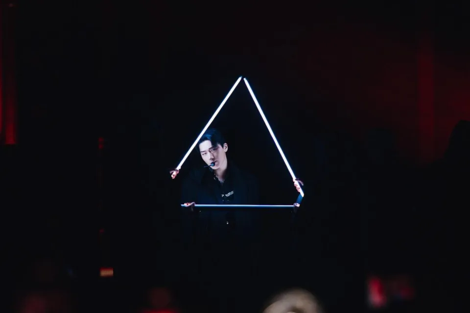 It’s hard not to be impressed by the sheer stamina involved in a production like this, the ferocious dancing and moving between the big stage and a smaller one at the end of a runway is knackering alone, but to it all while performing is another thing (any doubts as to whether or not they’re singing live are waived when member San’s head mic fails during ‘Illusion’ and he’s passed a second one to continue performing).