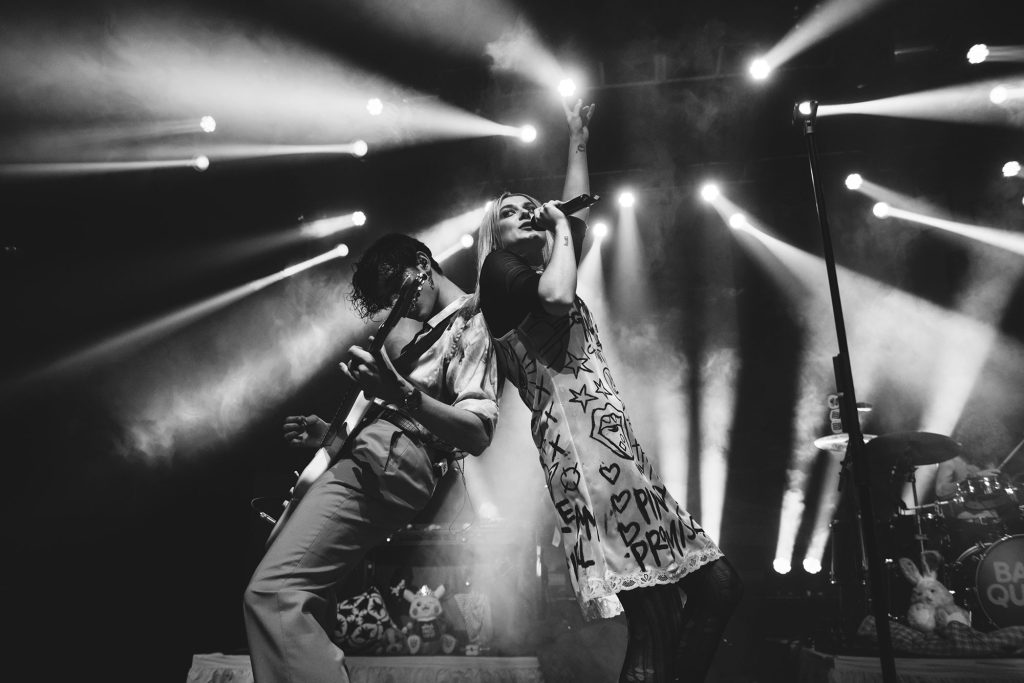 It's three songs into her headline night at London's Kentish Town Forum, and Baby Queen is standing front and centre with her hands on her head, gazing across the huge room. Screams ring out, applause bounces around the room in what could possibly be her grandest pop star moment to date. "This has been the most insane and incomprehensible week of my life," Bella Latham grins. "This is the crowd I always dreamed of playing to."