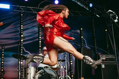 Griff delivers a pop masterclass on the Outdoor Stage on Saturday, her confidence belying her youth as she smashes out hits’ Head on Fire’, ‘One Night’ and ‘Black Hole’. It’s a credit to the astute bookings here that so many of these acts have taken time out from larger stages to treat Gloucester to artists that bother the upper echelons of the charts.