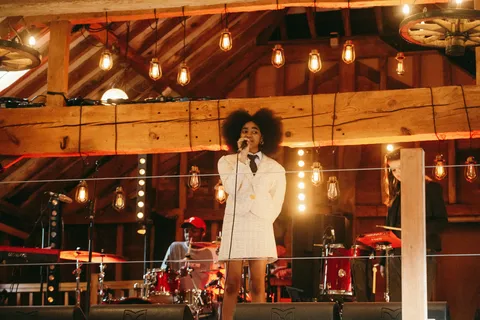 Earlier in the day, Bombay’s singer Jack Steadman and drummer Suren de Saram guest with Flyte, getting a flavour of the easy-going camaraderie that defines the festival. The duo work through reimagined versions of their repertoire with help from rotating guests, with the Paul Simon homage ‘Mistress America’ getting toes tapping. Returning hero and Barn alumnus Holly Humberstone is also present, helping out Flyte before delivering a triumphant Sunday Main Stage performance. With most of Holly’s family and friends present, it was a heartwarming moment to hear her songs bellowed back at her. After spending the year supporting Olivia Rodrigo across America, this was a special homecoming.