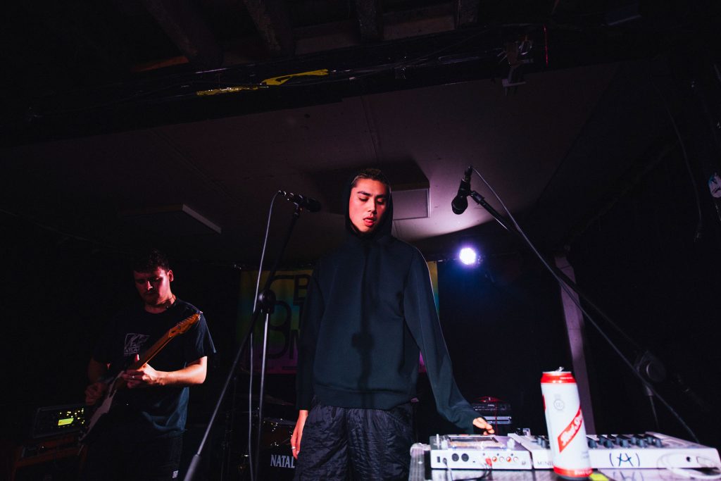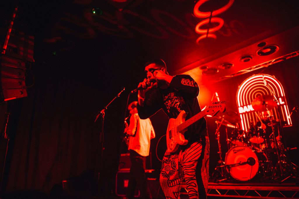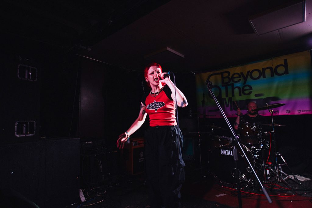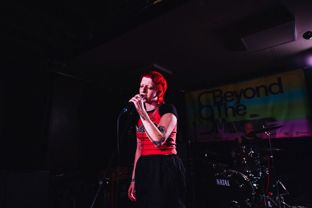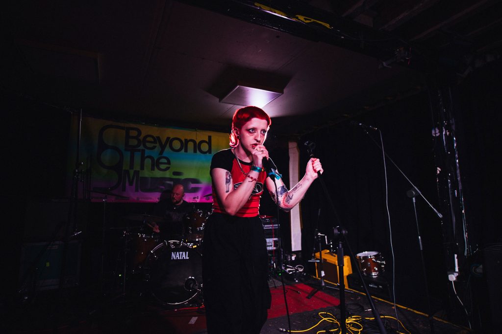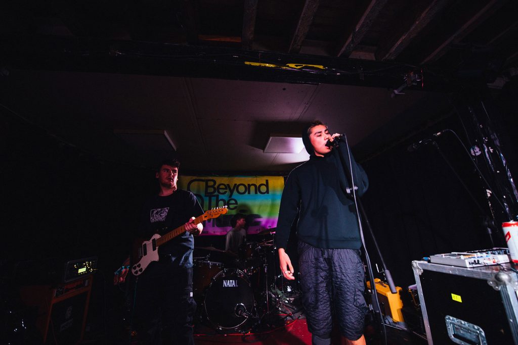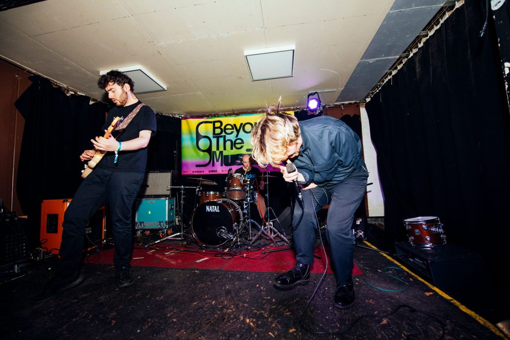 A palpable buzz emanates from Talk Show from the moment they take to the stage at Aatma. A band who've evolved with each step into a bonafide force, when on stage, they're a sledgehammer to everything you've known or seen before. A twisting and bubbling world of pill-punk dripping in pop swagger but with a visceral heavy soul, it's a commanding show from a band who take the dancefloor and drop it squarely in the middle of the moshpit. 'Trouble' is a meaty punch in the face, while 'Closer' and its dense blend of 90s shoegaze pop and chipping riffs only point to how glorious this next chapter for the band is set to be - taking those early foundations and morphing into a live spectacle that's at times Nine Inch Nails, at times sweaty-clubland but at all times is brilliant. Sounding bigger and bolder than ever before, they embrace the chaos when they're joined on-stage by crowd member Craig punching the lights out of a stray cymbal; it perfectly sums up Talk Show's commanding statement of intent at Beyond The Music.
