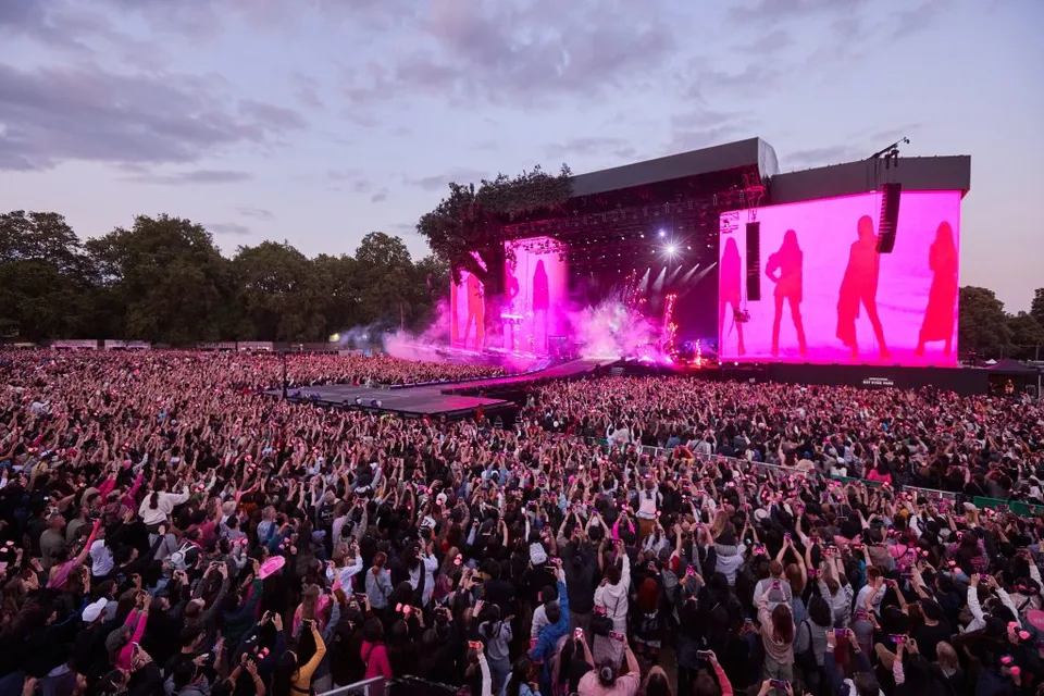 Piled into Hyde Park are 65,000 fans (or Blinks, if you're a purist) decked out in black and pink outfits, ranging from teenagers diligently lining up at the barriers all day to secure their spot, to young girls heading to their first festival, to the parents in tow carrying a pink box after reluctantly parting ways with £65 for a pink heart-shaped hammer, now swinging around in their daughter's hand.