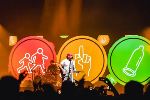 That energy becomes joyful via urgent, escapist breakout hits 'The Rock Show', 'All The Small Things' and 'What's My Age Again?' that unite the packed arena, while a thundering 'Bored To Death', the goth romance of 'I Miss You' and the emo 'Stay Together For The Kids' dig a little deeper. "Blink-182, celebrating the breakdown of loving families," grins Hoppus afterwards.