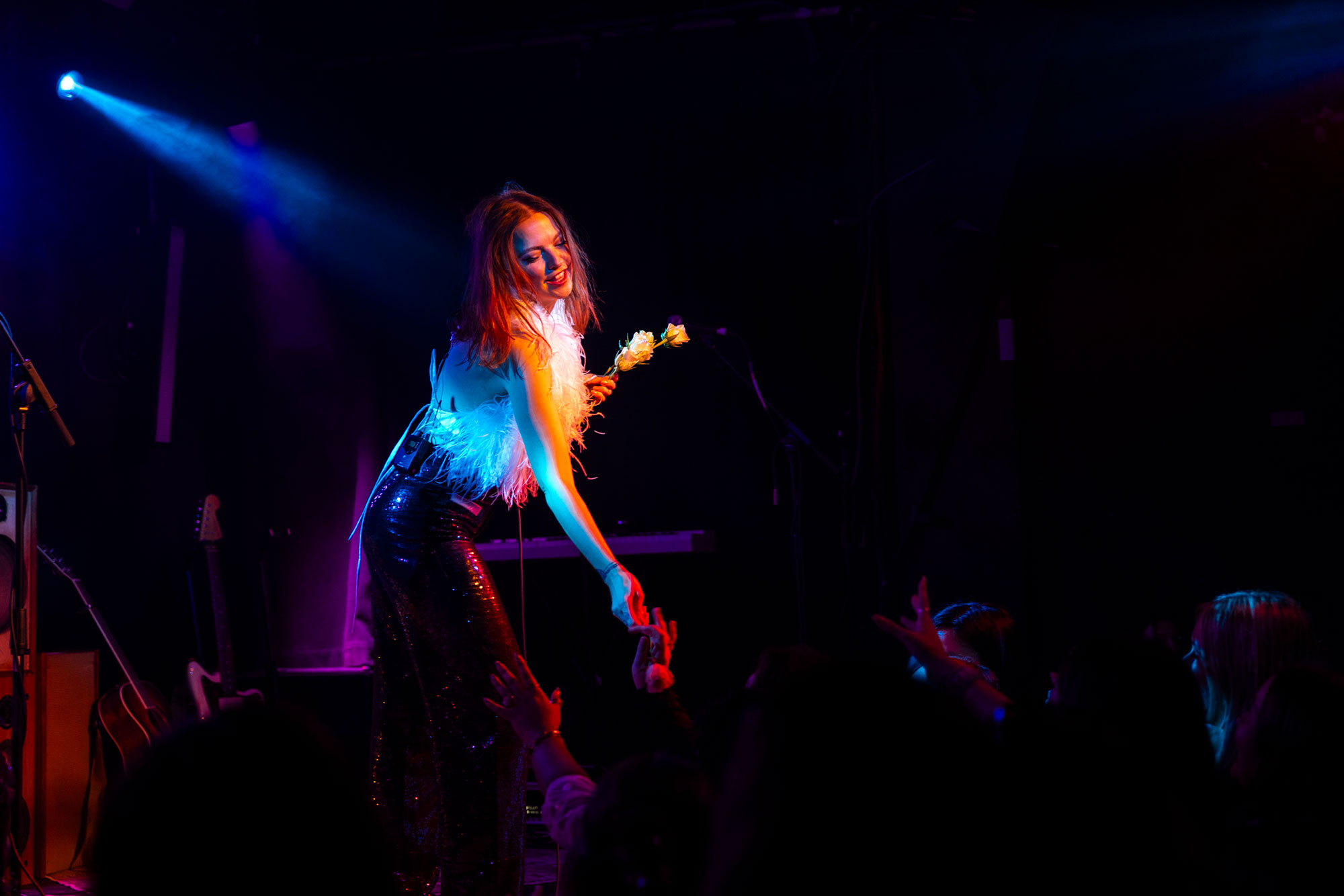With Colours Hoxton packed to the back, LALA HAYDEN opens with dazzling pop flourish. 'Honeymoon Suite' stands as her opening statement, a latest single that signals the larger-than-life world of pop at her command. Bass claps for 'Slice' and 'Rush Of Love' hit with unstoppable force, and that club-sized energy comes through tonight at Colours. Screams rise before 'Woman' and with 'Baby, You're The Best', LALA HAYDEN marks herself as a pop star embracing the freedom of celebrating something greater.