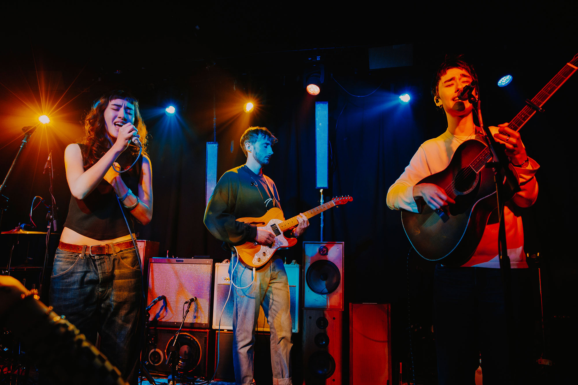 Esme Emerson transform Colours Hoxton into the greatest pop campfire when they take the stage. With two guitars and their voices alone they transfix the room into a world of heart-warming bliss that makes its loudest statement through raw emotion. The swooning 'Together' and fizzing 'Yard' blend perfectly - forming a sound that can't be dissected, only experienced. Airing new tracks and thriving before a crowd who fall for them at each step, tonight hints at what's to come. Pure songwriting brilliance even when stripped to guitars and voices, if this is an appetiser then the main course has us salivating.