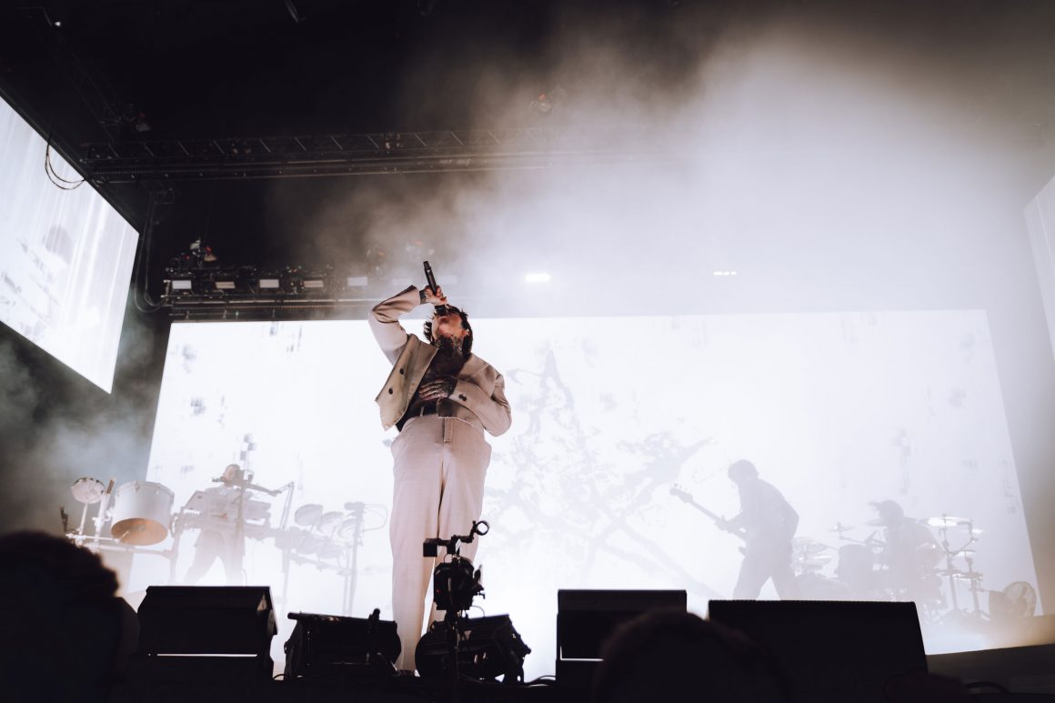Doors have barely opened when Nova Twins take to the stage, but they quickly turn the O2 into their own personal playpark. Their juddering, riff-driven music walks the fine line between metal and pop without compromising on either, and it sounds incredible in rooms of this size. When they bound onto the stage later in the night to perform ‘1x1’ with BMTH, they bring an energy that isn’t felt at any other point in the night.