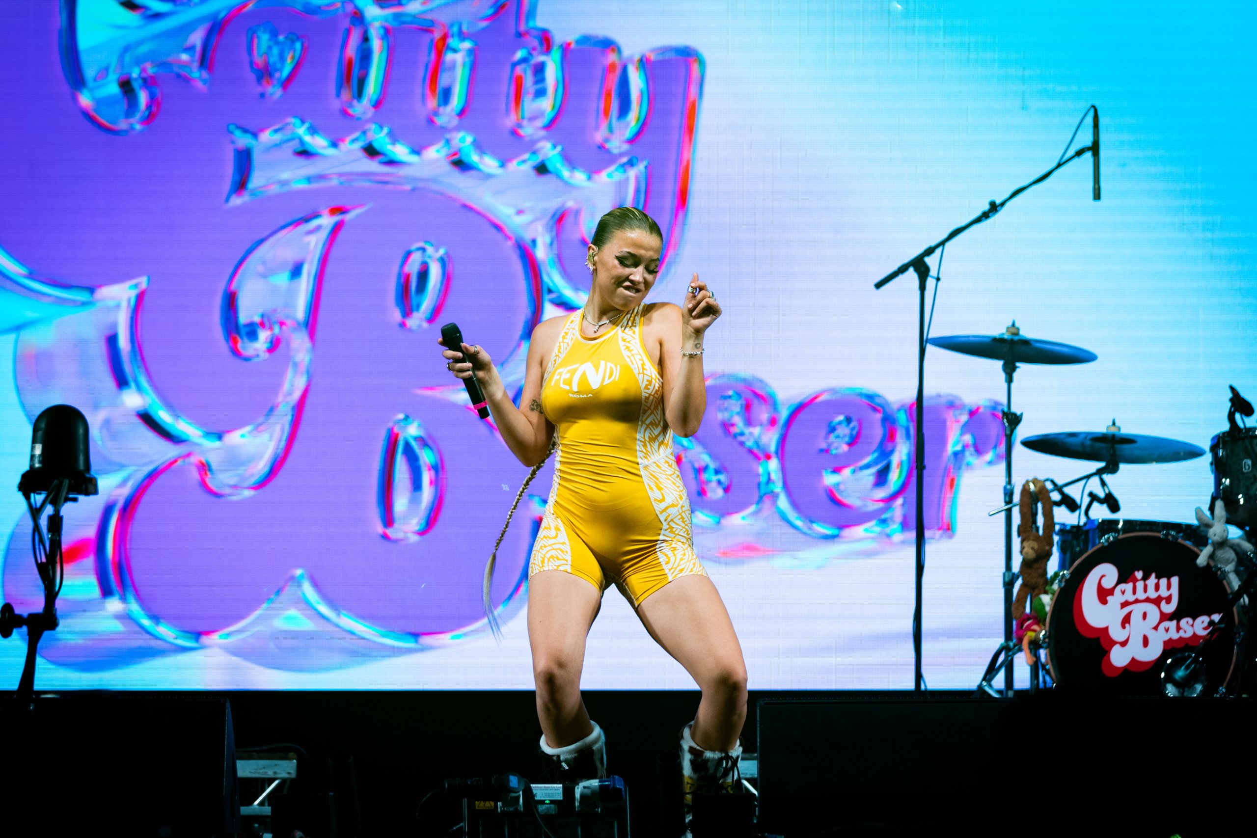 If one pop star has dominated this festival season, it’s Caity Baser. Flying out every weekend, she’s gone from strength to strength, climaxing at this full circle moment at Reading. Last year, she played at the BBC Introducing stage to a full field. Now she’s graduated to the BBC Radio 1 Dance Stage, packing it to the rafters and bringing the bangers she’s spent all summer warming up.