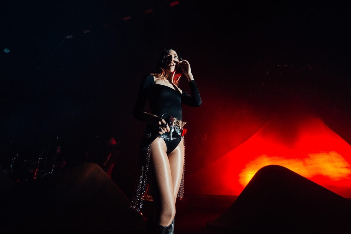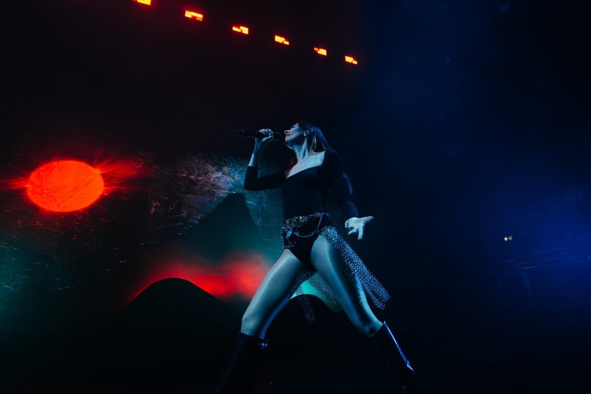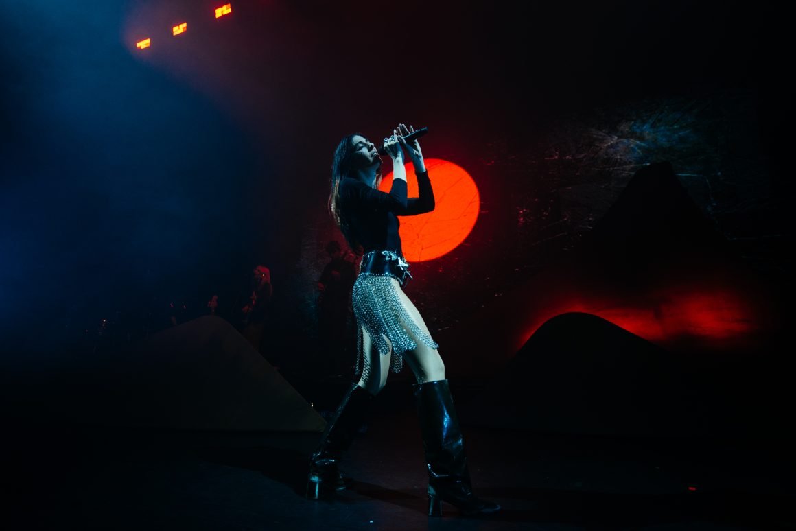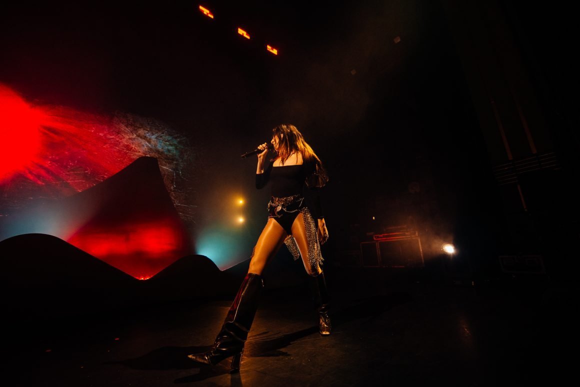 Leaning heavily into the Valentine’s vibes, she mimics plucking chocolates from the air, as if picking fruit from a tree, to the opening beat of billions, before throwing actual chocolates into the crowd as the track starts. While it’s not her final track, the entire theatre singing “I never felt so close to you” is a very special moment.