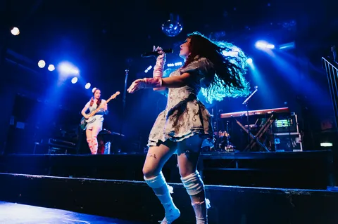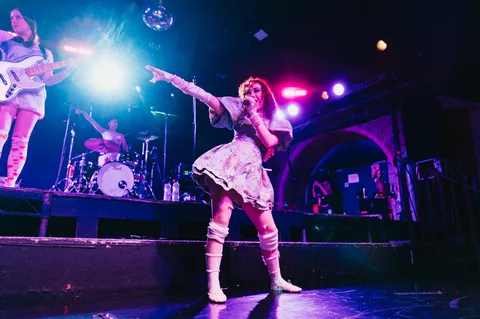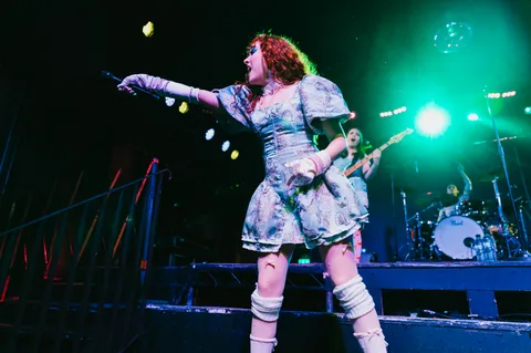 As much as tonight indulges in over-the-top excess, it’s all grounded in lived experiences. “My songs are about dating and falling in love,” Chappell tells the crowd, before revealing how difficult that was as a gay teen in North America’s Midwest. “Growing up, there were all these weird rules,” she continues, before shattering them all with the snarling ‘Super Graphic Ultra Modern Girl’. Later, she admits that being onstage comes with voices in her head telling her she’s not pretty or talented enough. “This song is an exorcism. I get that bitch out,” Chappell grins before the glorious revenge anthem ‘My Kink Is Karma’. She’s not the only one using tonight as a purge either.