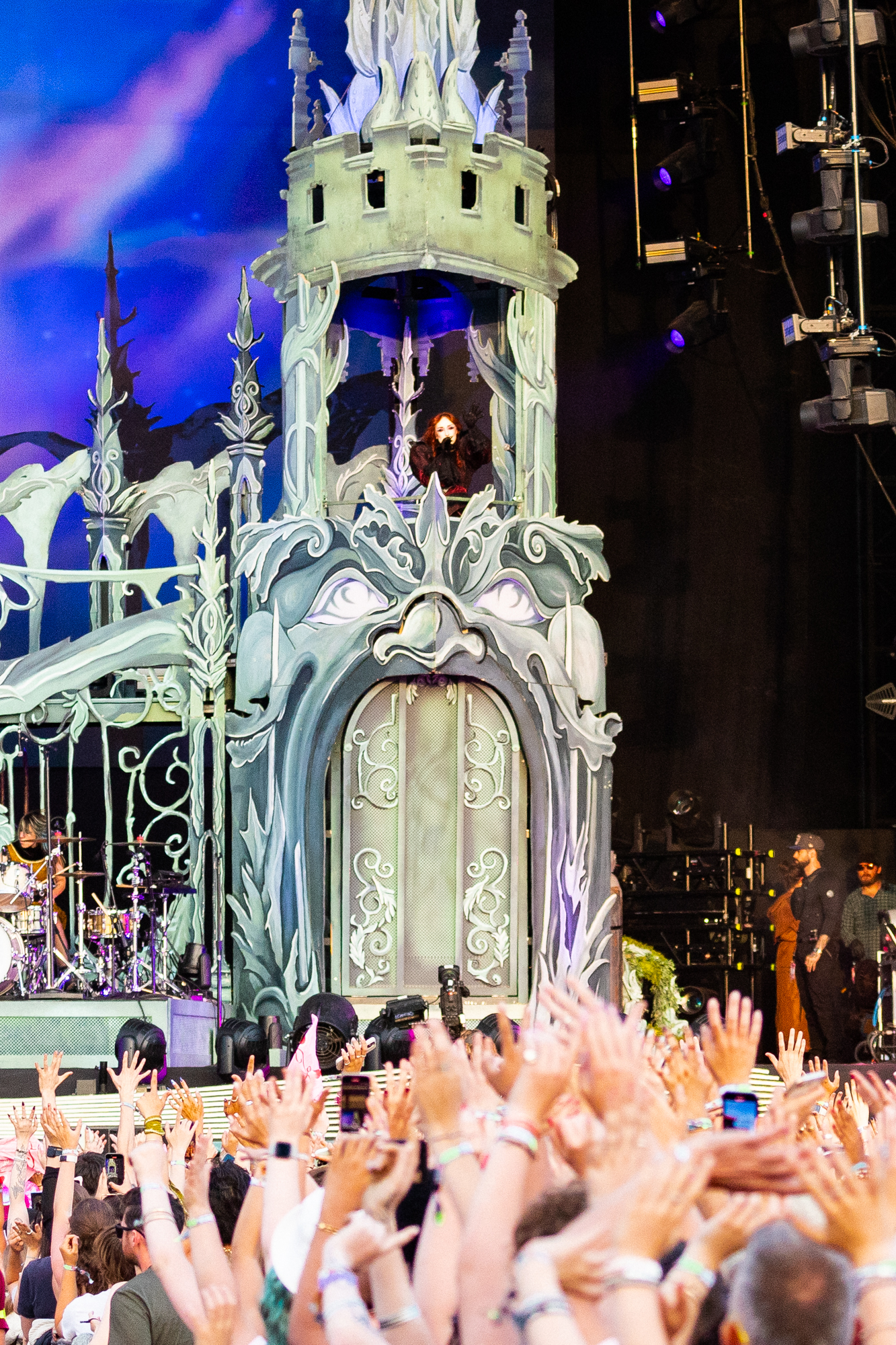 She sings the soaring ‘Good Luck Babe!’ into a wind machine and starts the show dressed like a Disney villain. “I want to teach you a dance,” she grins before a giddy ‘HOT TO GO!’, clearly having fun with the whole thing. That playful spirit weaves its way through the show. The tender ‘Coffee’ sees her cuddling a goblin, and the “not overdramatic” line from opener ‘Super Graphic Ultra Modern Girl’ is delivered with the biggest of winks as fireworks erupt behind her.