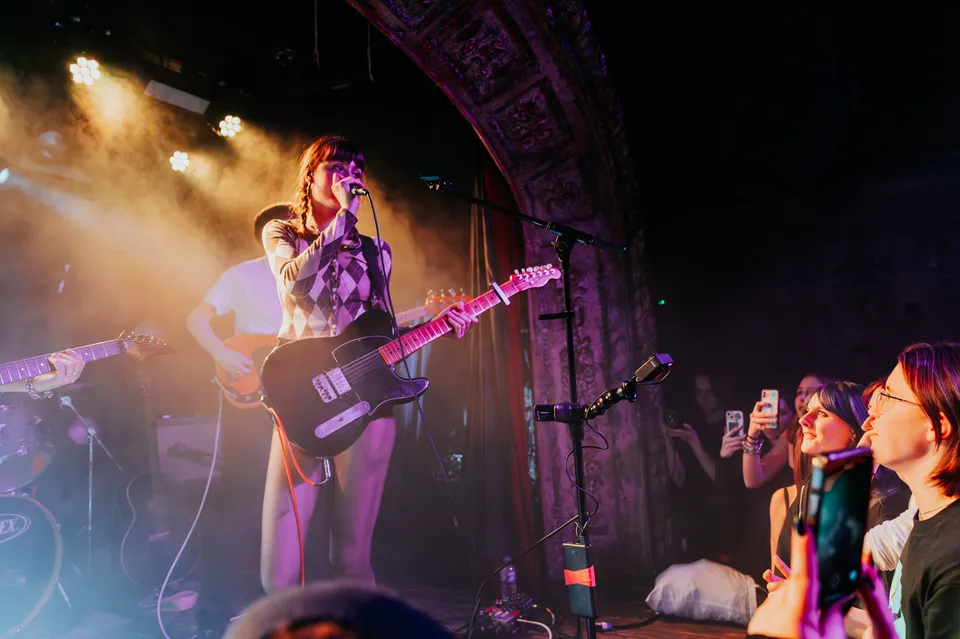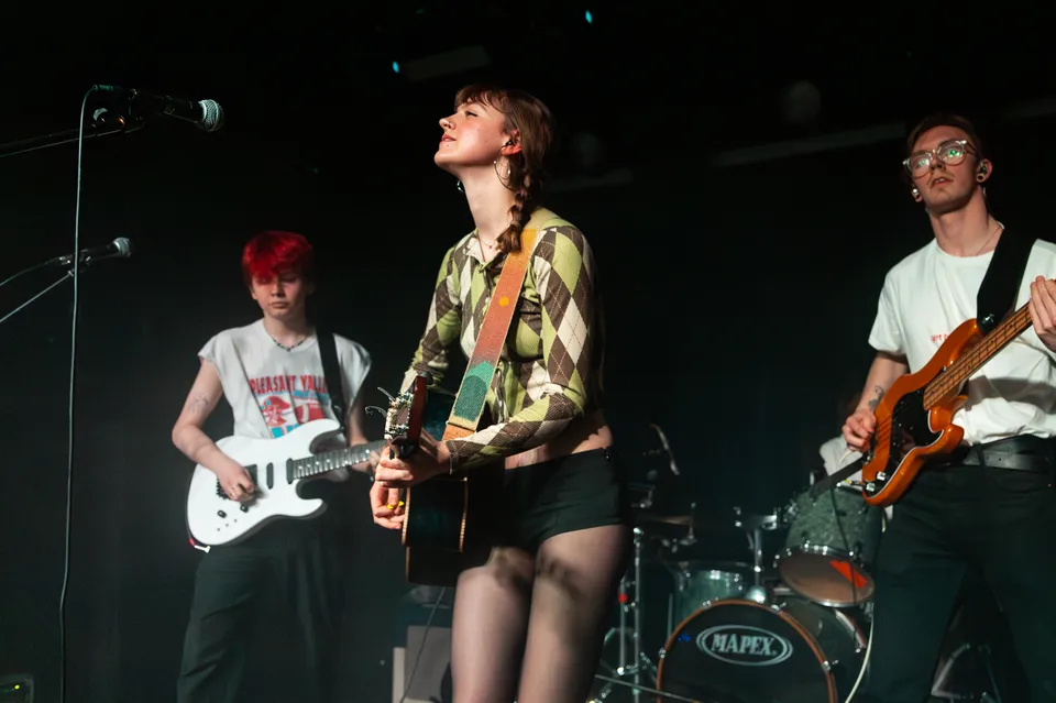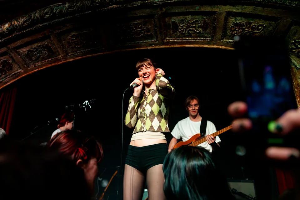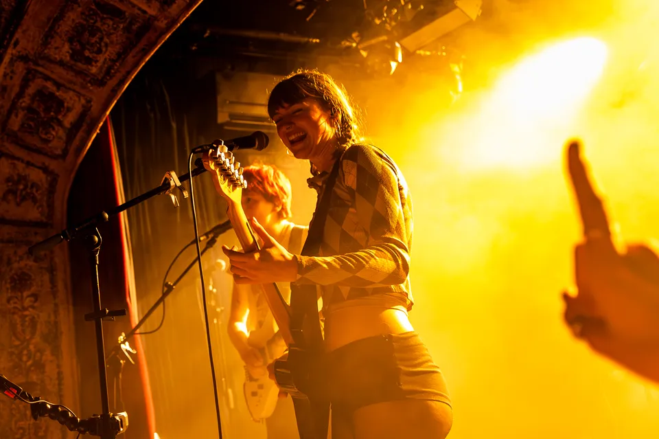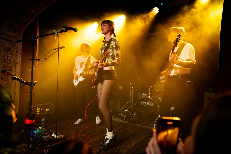 In between, there’s the fizzing indie sleaze disco of ‘Death Trap’, the twinkling emo of ‘Thomas Street’, and the viciously playful ‘Nothing Shines On This Island’, offering the crowd joy and space for shared frustration. Debut single ‘Sinking Feeling!’ makes room for fear and anxiety-riddled burnout while chirpy new song ‘Harriet’ is far surer of itself, dealing with jealousy and hurt over arena-baiting guitar licks.