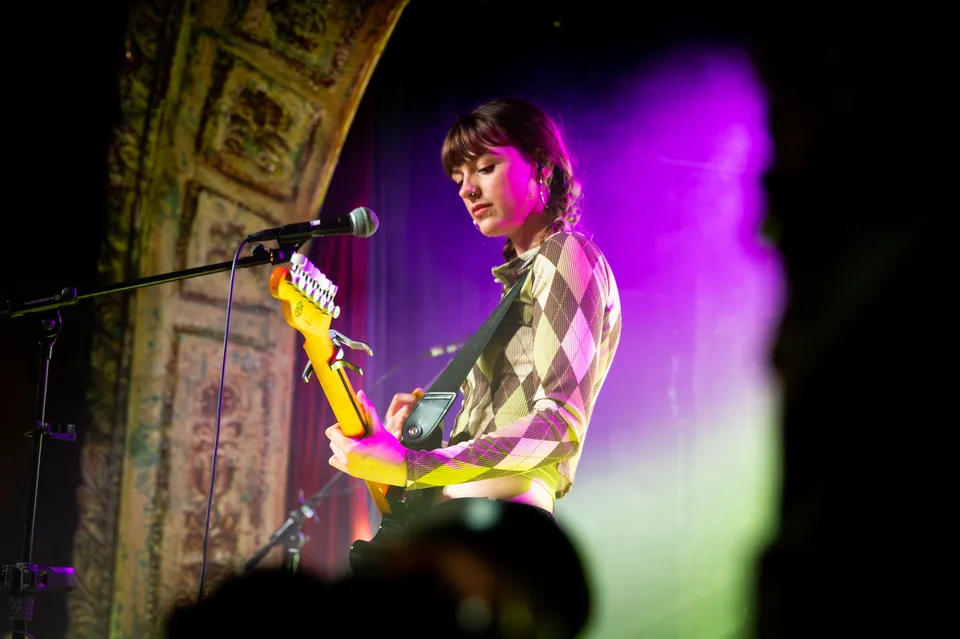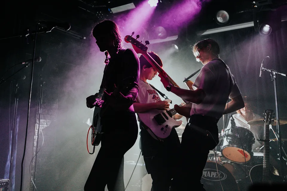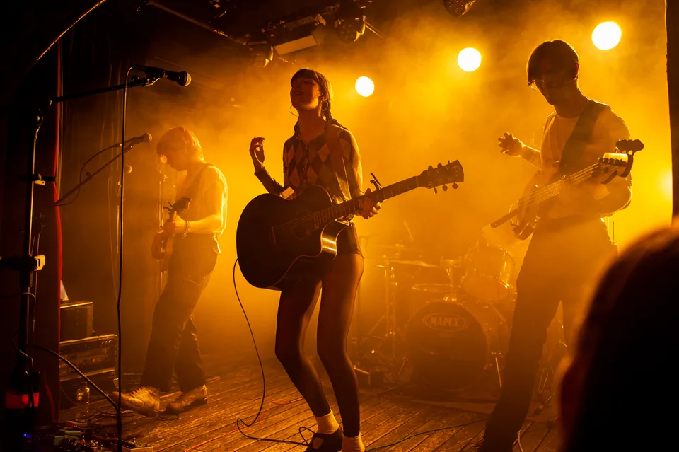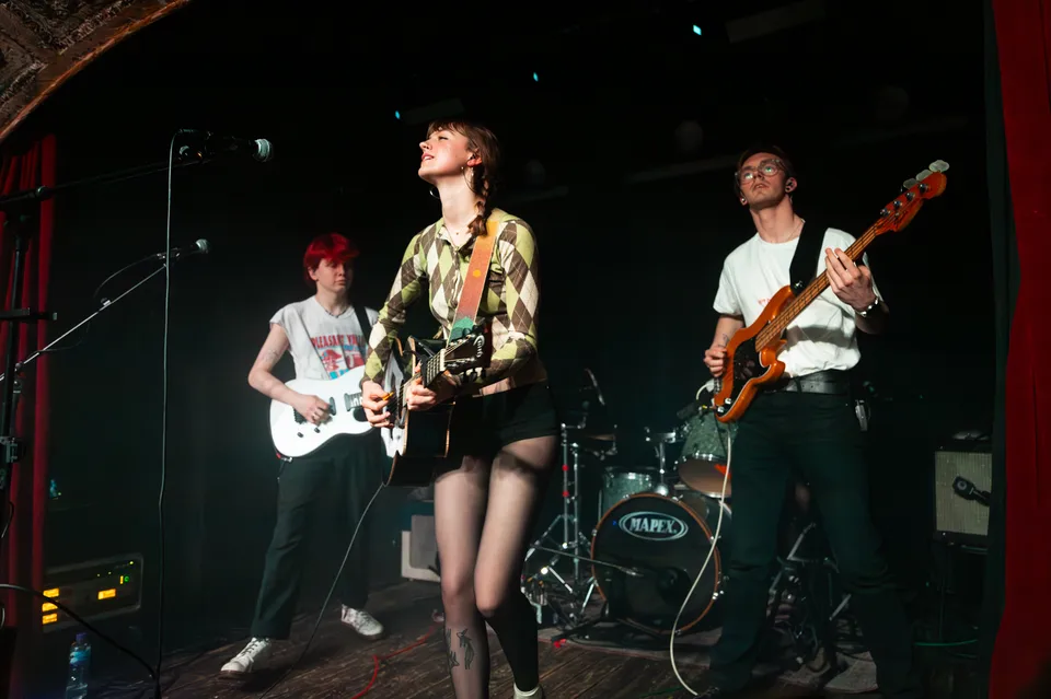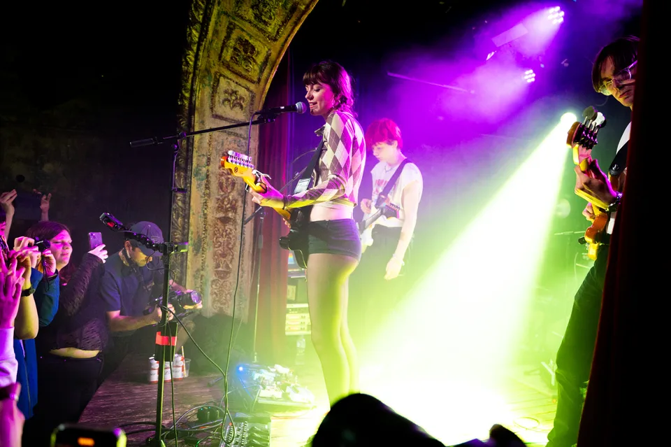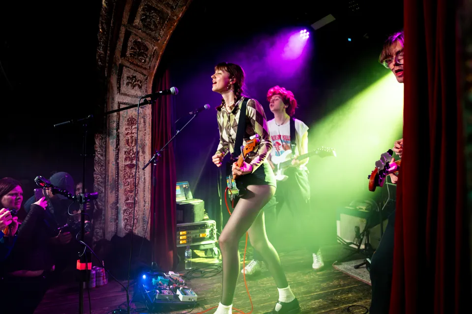 In between, there’s the fizzing indie sleaze disco of ‘Death Trap’, the twinkling emo of ‘Thomas Street’, and the viciously playful ‘Nothing Shines On This Island’, offering the crowd joy and space for shared frustration. Debut single ‘Sinking Feeling!’ makes room for fear and anxiety-riddled burnout while chirpy new song ‘Harriet’ is far surer of itself, dealing with jealousy and hurt over arena-baiting guitar licks.