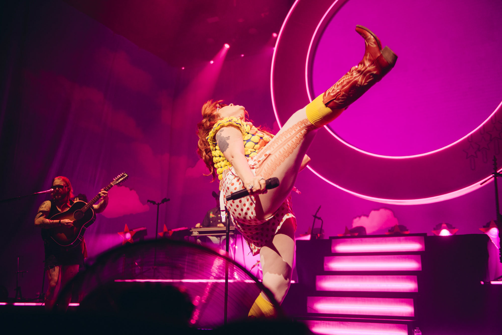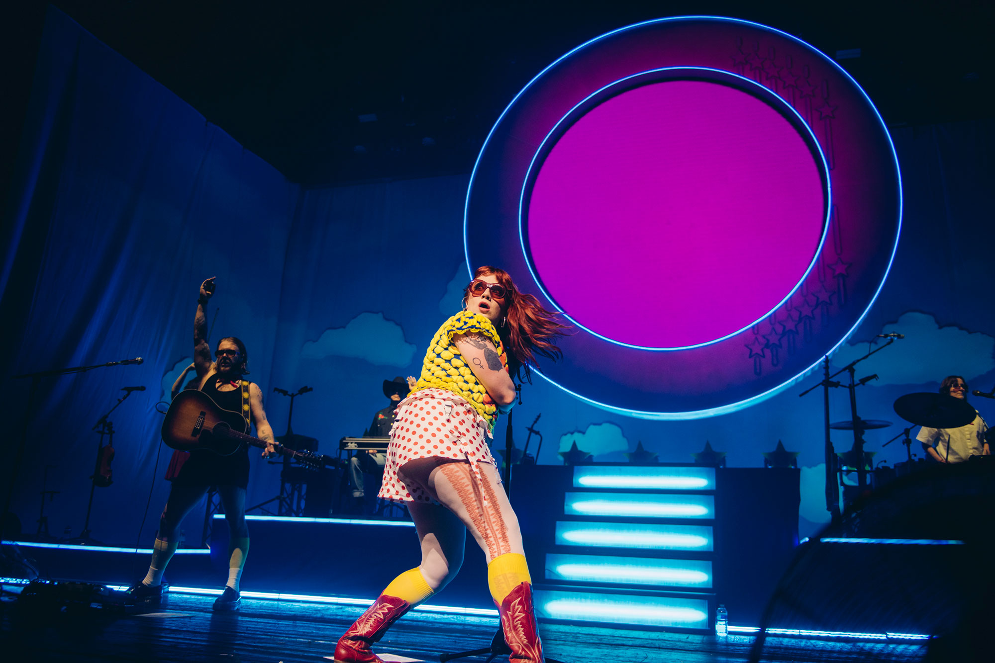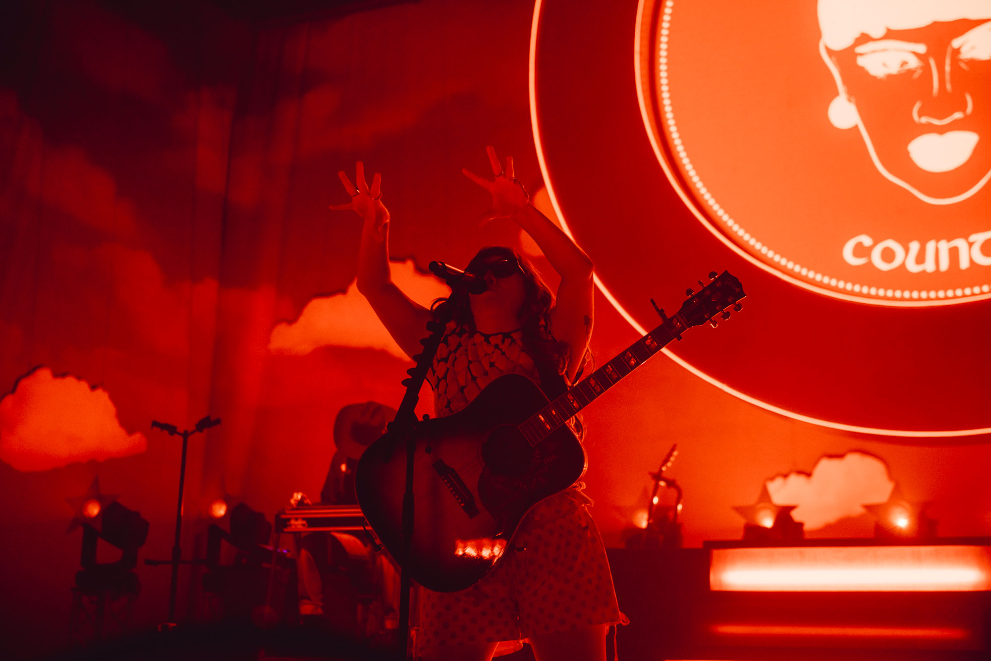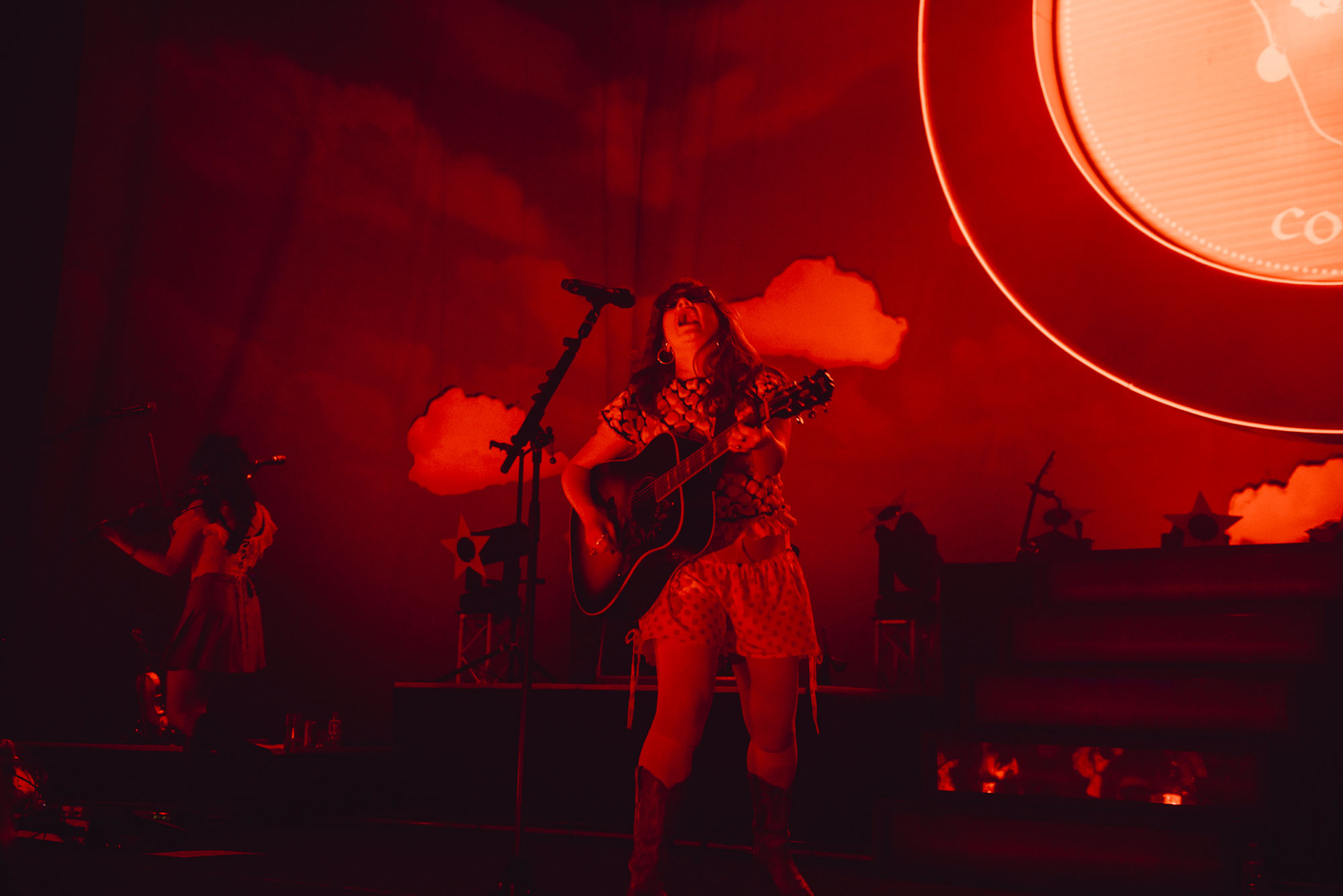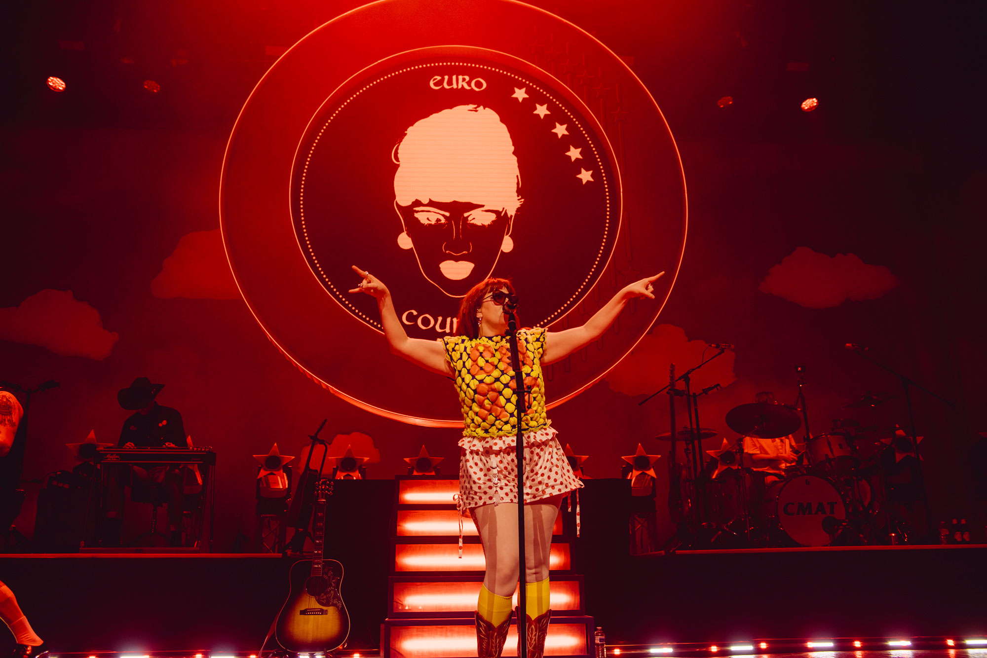All of this is elevated by an audience ready to whoop, holler, and sing along at every turn, at times even drowning out the impressive vocals of the star herself. Welcoming them into the show, CMAT feels like the leader of a Vaudeville performance, with exaggerated comedy reactions to her own lyrics and a panto-style call of "It's behind you!" as she introduces her band members. There's even a moment between songs for a quick glass of wine and a chat about the joys of Christmas.
