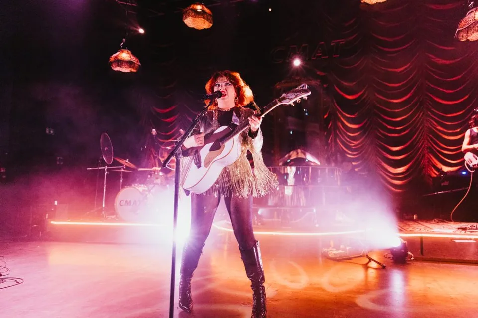With a ribboned red curtain behind her and a four-piece band, there's more than a hint of theatre to this CMAT show, especially when the centre of the stage is filled by a five-tier podium with a mirror on top. It's lavish Las Vegas opulence, but CMAT bends it into something more intimate, performing in front of it like a kid in their bedroom with a hairbrush microphone. She admits that tonight should be terrifying, but CMAT couldn't look more comfortable embracing the front rows while singing 'Can't Make Up My Mind'. "I love how much you understand me," she beams, making small moments feel huge and cutting daunting subjects down to size.