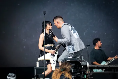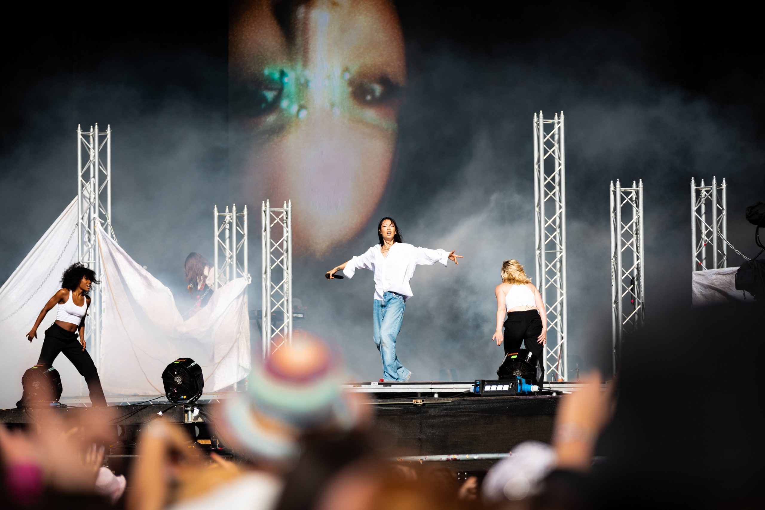 Peaking early with ‘American Teenager’ second up, she’s also quickly in the crowd for a walk of the front row, who of course end up crying in her arms. For a half-hour set, it only comprises of five songs, each one making a different impression. “This one’s a little yeehaw”, she notes before ‘Thoroughfare’, already a stark contrast from the indie pop of ‘American Teenager’ and wailing emotional ballad ‘A House In Nebraska’. But ending on her first hit ‘Crush’, she’s back to the bangers, and solidifying her place as one of the most eclectic and exciting artists the festival has to offer. (AF)