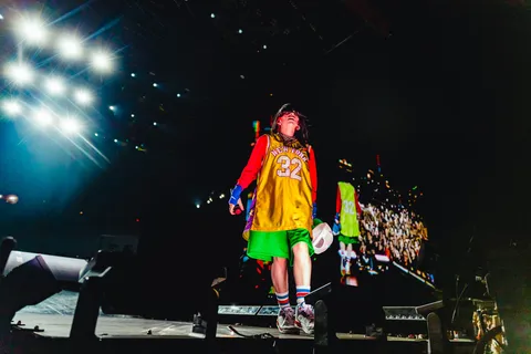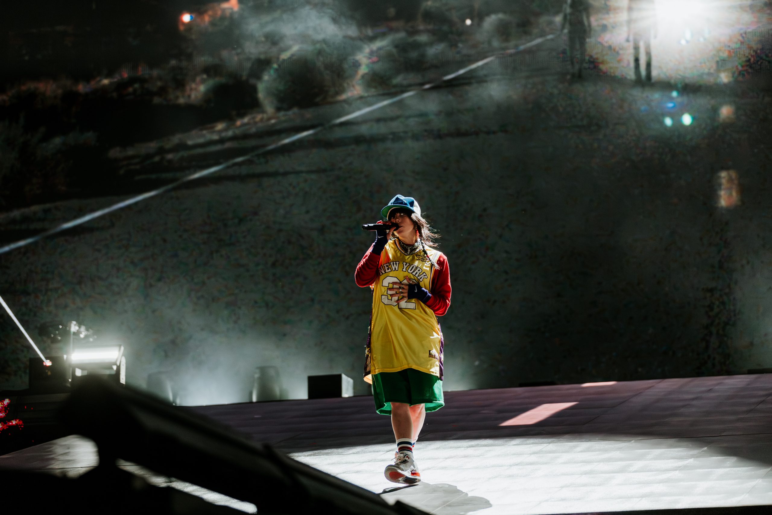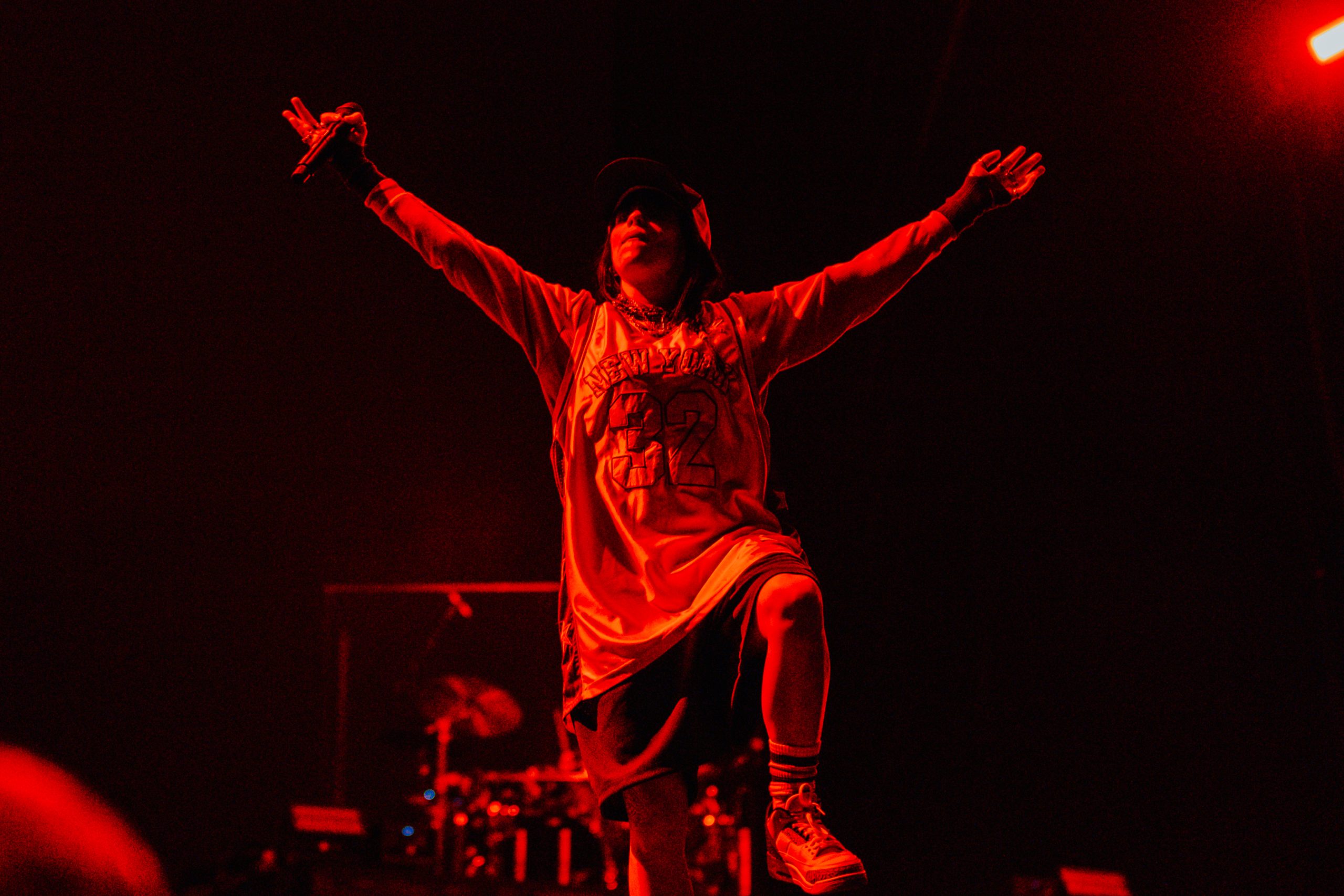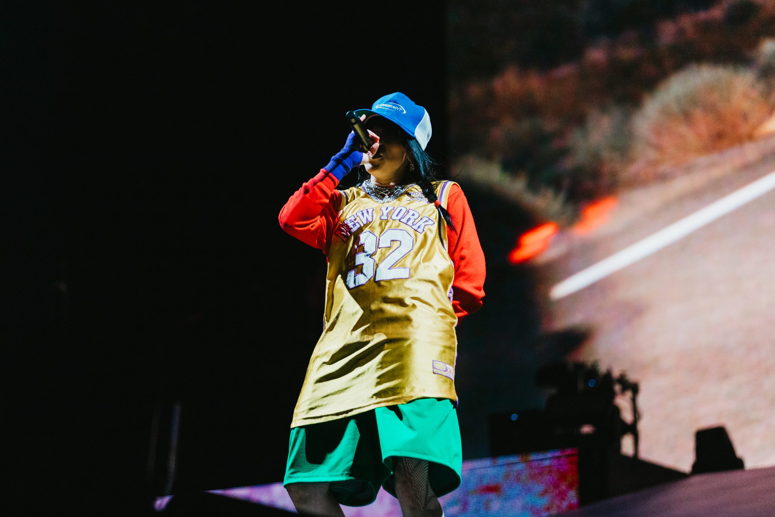 Still, the show doesn’t feel tired or overdone. The punters in the front rows have been firmly parked since the gates opened, and the screams from down there when she takes to the stage are visceral. Opening with her first proper hit ‘bury a friend’, she’s electric. Once baffled by the huge crowds, she now embraces them, pacing the runway and running up the backlit ramp that fills the stage without ever losing her breath, as she rattles off ‘I Didn’t Change My Number’, ‘NDA’ and ‘Therefore I Am’.