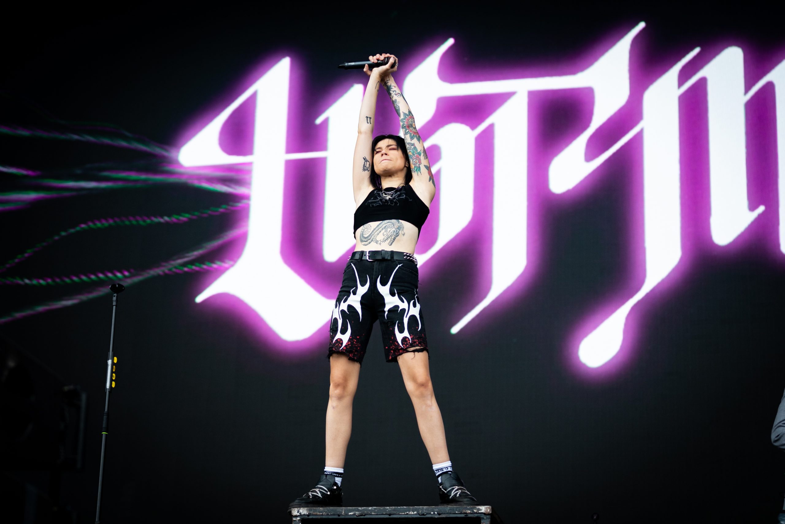 As the set takes a turn, ‘STFU!’ is introduced with a call out to how fucked up the world is right now, and likely one of the most metal sections of the weekend (Reading used to be a rock festival, eh) as she intros it with Korn’s ‘Blind’ and outros with Limp Bizkit’s ‘Break Stuff’. Frankenstein follows suit with it’s Bloc Party rhythm section and an insane drum solo.