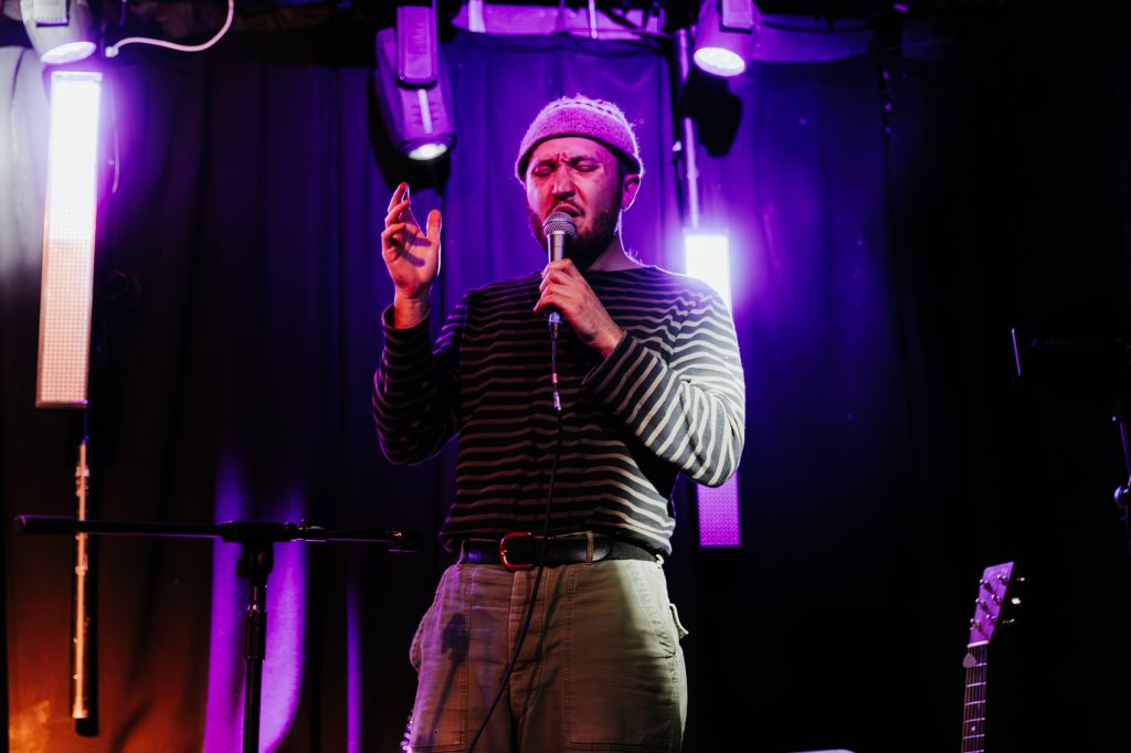 New steps continue with Gus Tiramani. At the heart of all things The Magic Gang has been this earnest knack for swooning hooks and wholesome release - and that core is there in its most blissful form with Gus's own project. Performing tonight as a two-piece, his set is like being welcomed directly into his front room. The touch of a classic songwriter ripples from start to finish, showcasing why tracks like 'If I Fall' and 'Old Friend' are already becoming hot water bottles of soothing joy. It's a stunning world-creating statement which puts emotion directly into the middle of Colours Hoxton, showcasing an old soul distilled into a modern and fresh twist. With touches of Matt Maltese, Tobias Jesso Jr and the best of soul, the crisp winter may be the perfect introduction to everything Gus Tiramani.