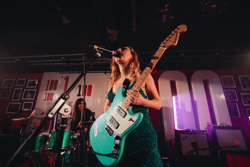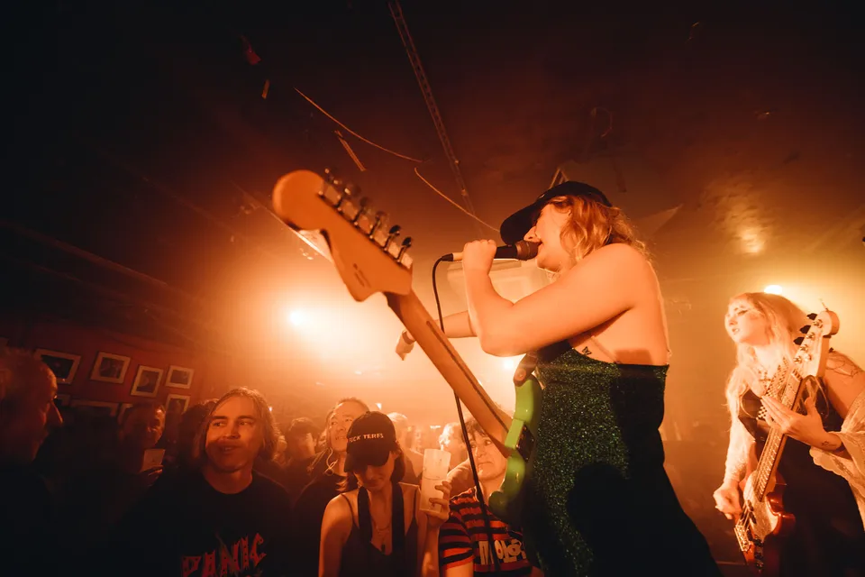 From the moment Lambrini Girls take to the Dork's Christmas Night Out stage, they've one goal: to turn The 100 Club on its head. Ripping firmly into frame, it's an in-your-face reminder of how they've been turning heads all year, emerging as one of the most in-demand live bands going and stepping into an era where everyone has no choice but to dive into every circle pit and sweaty punk-rock eruption. With both Phoebe and Lilly from the band regularly diving into the crowd, it's a searing mix of unpredictability and danger that revels in the chaos it brings. A visceral shot in the arm, the likes of 'Terf Wars' and 'Lads Lads Lads' are met with rapture as Phoebe surfs across the room, jumps up on grand pianos and turns The 100 Club into her own personal playground. More than just the fun, the set is filled with callouts rallying against JK Rowling, the government and sweaty nonces. By the time 'Boys In The Band' and 'Craig David' wrap up proceedings, Lambrini Girls have seized yet another night. A glorious live phenomenon with a vital message and purpose, there's no choice but to dive in.
