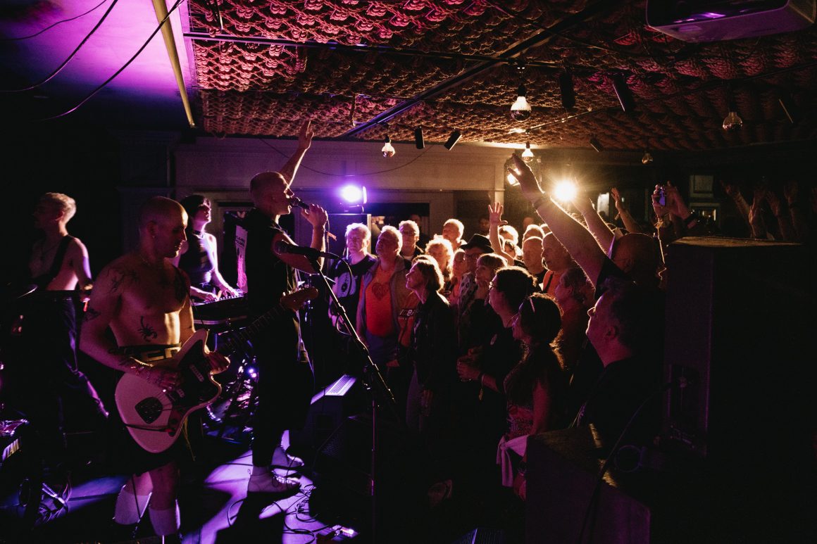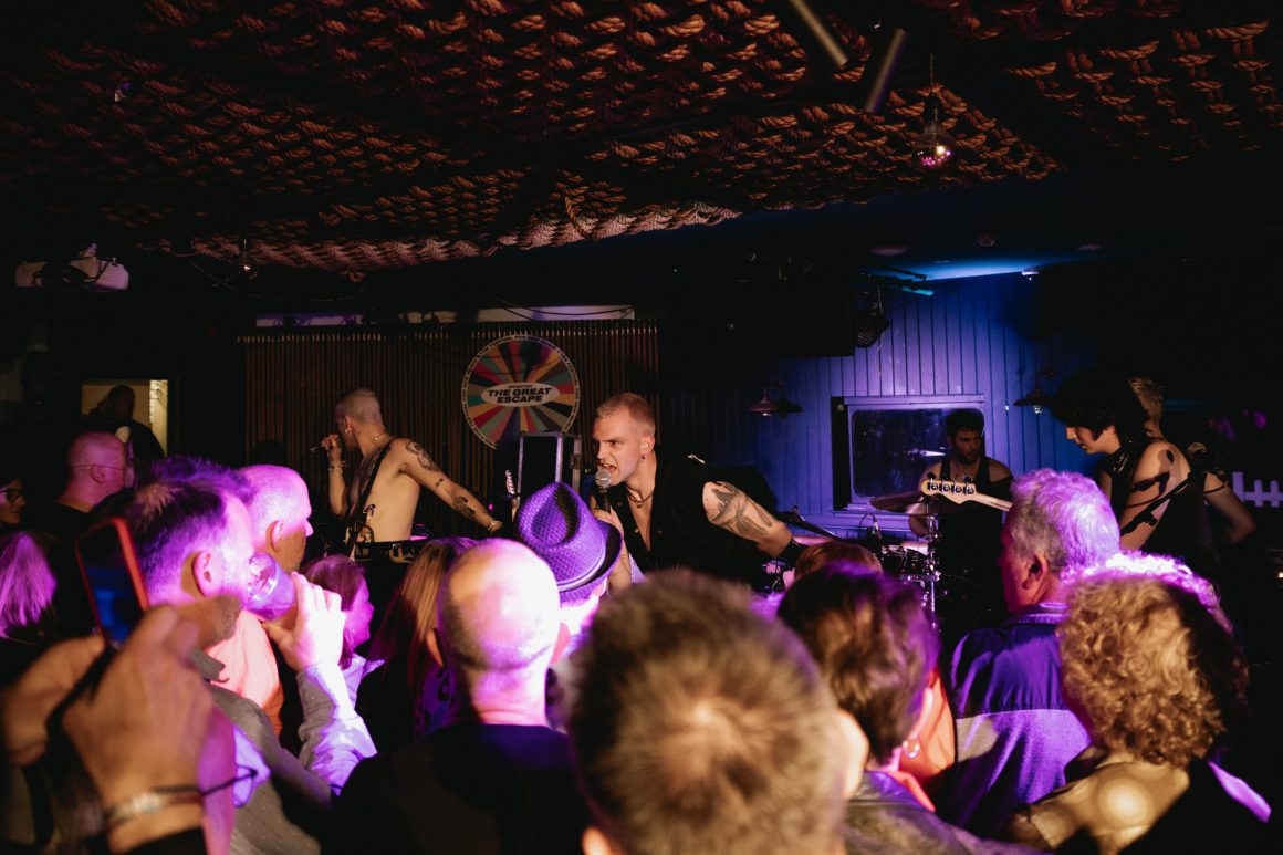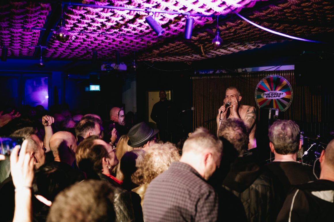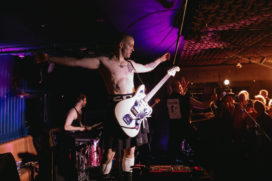 Closing the stage are Glasgow five-piece Vlure. It’s their only show of the weekend and they act like it, swinging shirtless from the ceiling as their synth-heavy bangers shake the walls apart. ‘Show Me How To Love’ gets the crowd pogoing within 30 seconds and the atmosphere is more like an illegal warehouse rave at 2am than a pub with three real ales on tap. It’s 30 minutes of tight, white-knuckle adrenaline, and by the time closing track ‘Euphoria’ rolls around everyone at the venue is sweating more than they have in months.