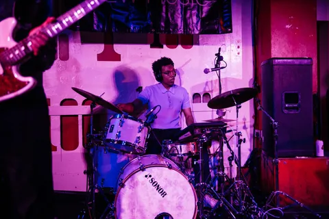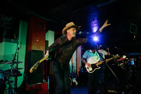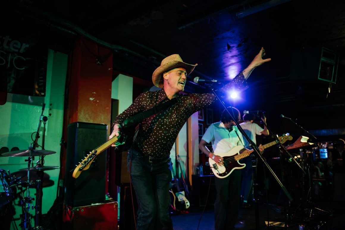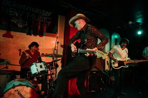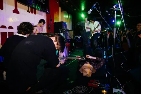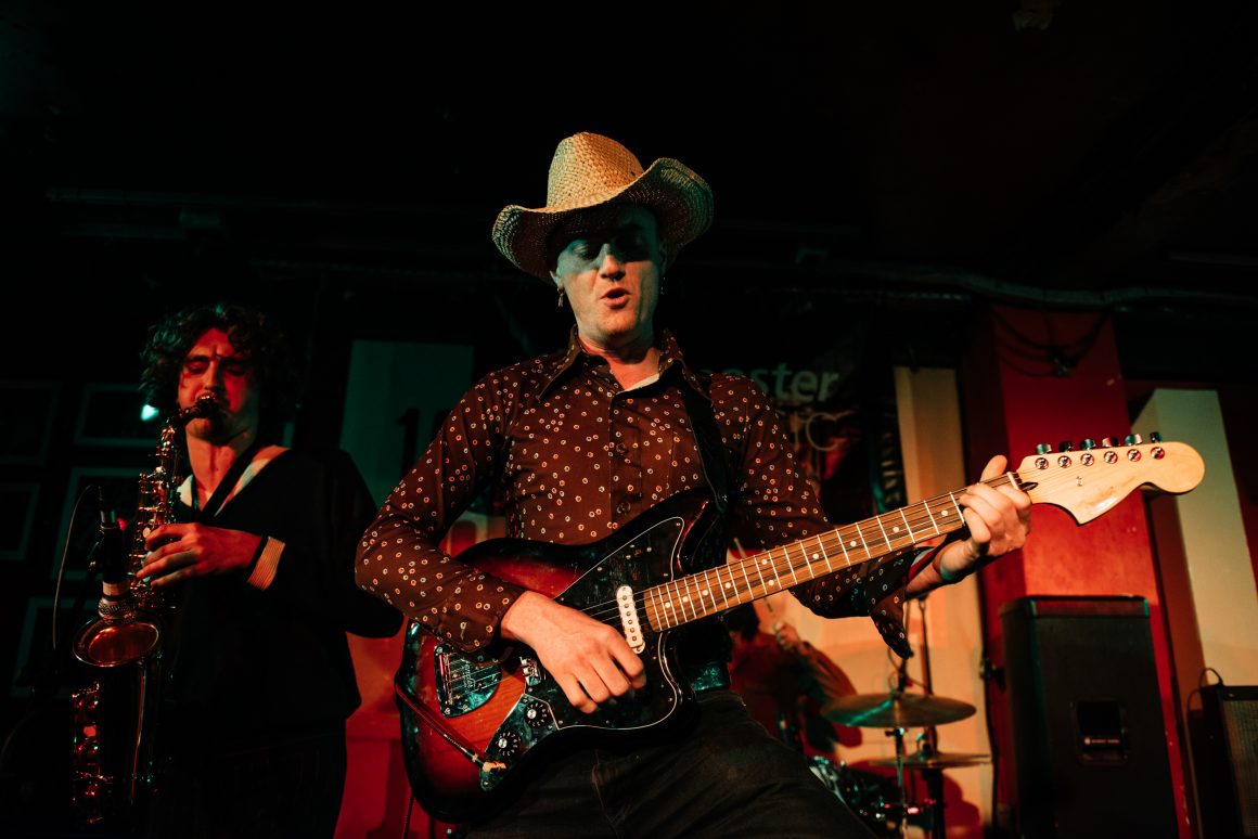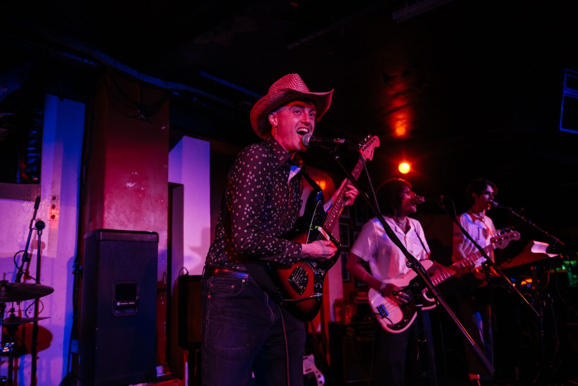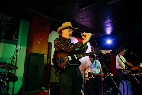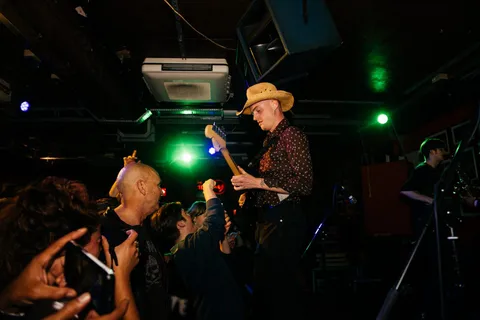 To close out a night like tonight can take a lot. Thankfully, Opus Kink are a band born to soundtrack parties. They begin their set like a match lighting a fuse. Part Orville Peck yeehaw, part Fat White Family mayhem, always at the peril of derailing but somehow still in control - the adrenaline rush that comes from both situations is addictive. Their kick-pedal breaks off at one point, and the band are left in limbo. A quickly raised hand from L'objectif sorts the issue out in no time - a perfect distillation not only of Opus Kink's closing set, but the night's communal spirit.